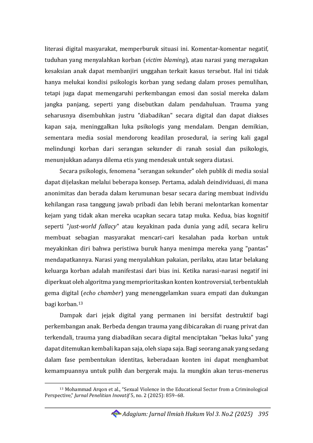 MEJAILMIAHMEJAILMIAH Hasil penelitian menunjukkan bahwa modus operandi pelaku sangat terstruktur, dimulai dari proses grooming, pemberian hadiah, manipulasi psikologis, hinggaHasil penelitian menunjukkan bahwa modus operandi pelaku sangat terstruktur, dimulai dari proses grooming, pemberian hadiah, manipulasi psikologis, hingga
