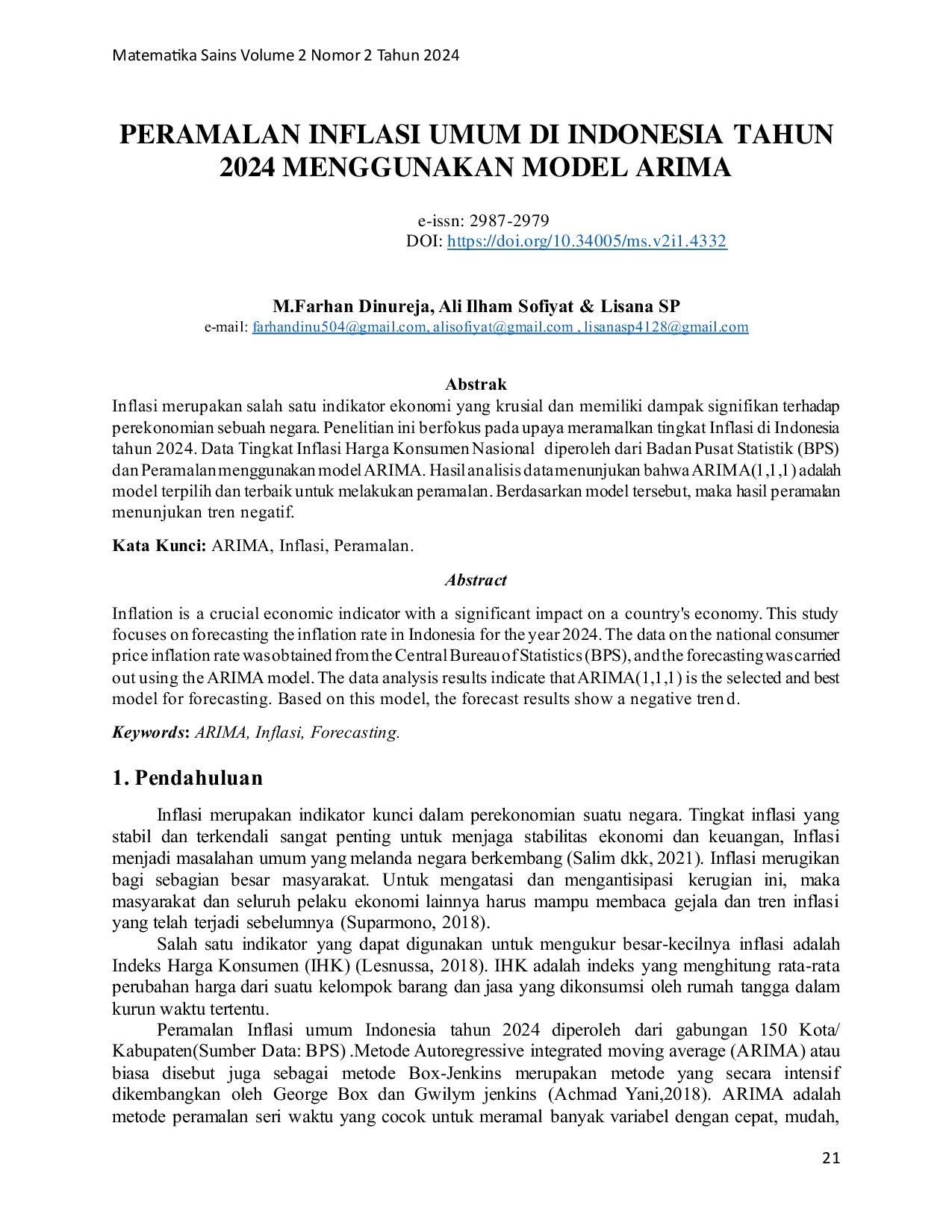 UIAUIA Hasil analisis data menunjukkan bahwa ARIMA(1,1,1) adalah model terpilih dan terbaik untuk melakukan peramalan. Berdasarkan model tersebut, maka hasilHasil analisis data menunjukkan bahwa ARIMA(1,1,1) adalah model terpilih dan terbaik untuk melakukan peramalan. Berdasarkan model tersebut, maka hasil