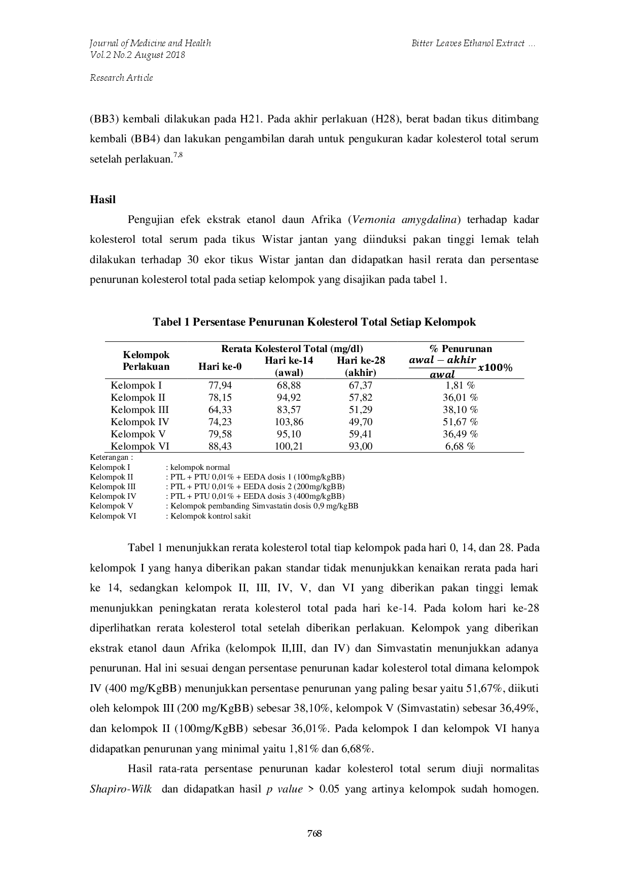 MARANATHAMARANATHA Pakan tinggi lemak diberikan selama 14 hari dilanjutkan dengan perlakuan selama 14 hari. Data persentase penurunan kadar kolesterol total sebelum dan setelahPakan tinggi lemak diberikan selama 14 hari dilanjutkan dengan perlakuan selama 14 hari. Data persentase penurunan kadar kolesterol total sebelum dan setelah