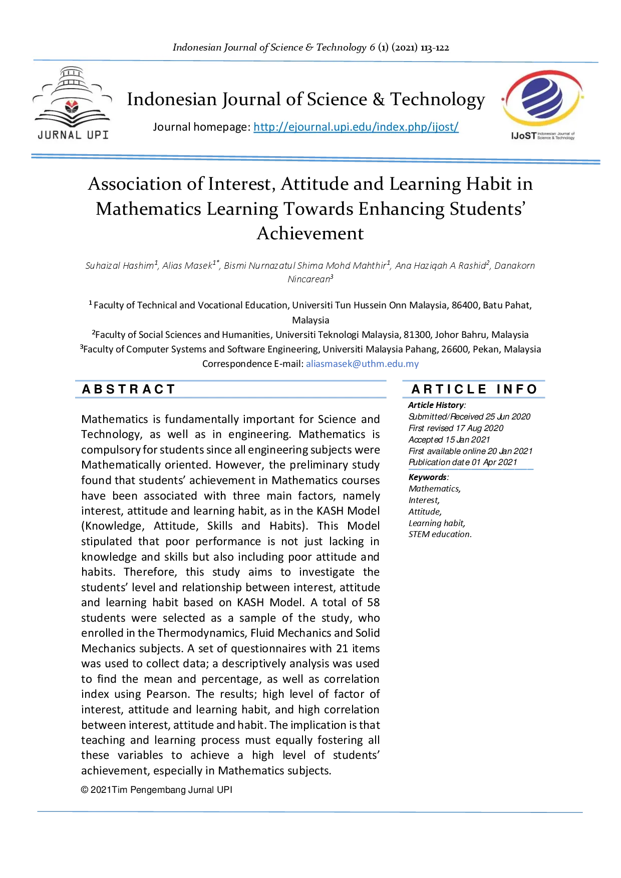 UPIUPI Penelitian ini menemukan hubungan antara minat, sikap, dan kebiasaan belajar siswa dengan pencapaian akademik. Variabel-variabel ini diyakini mempengaruhiPenelitian ini menemukan hubungan antara minat, sikap, dan kebiasaan belajar siswa dengan pencapaian akademik. Variabel-variabel ini diyakini mempengaruhi