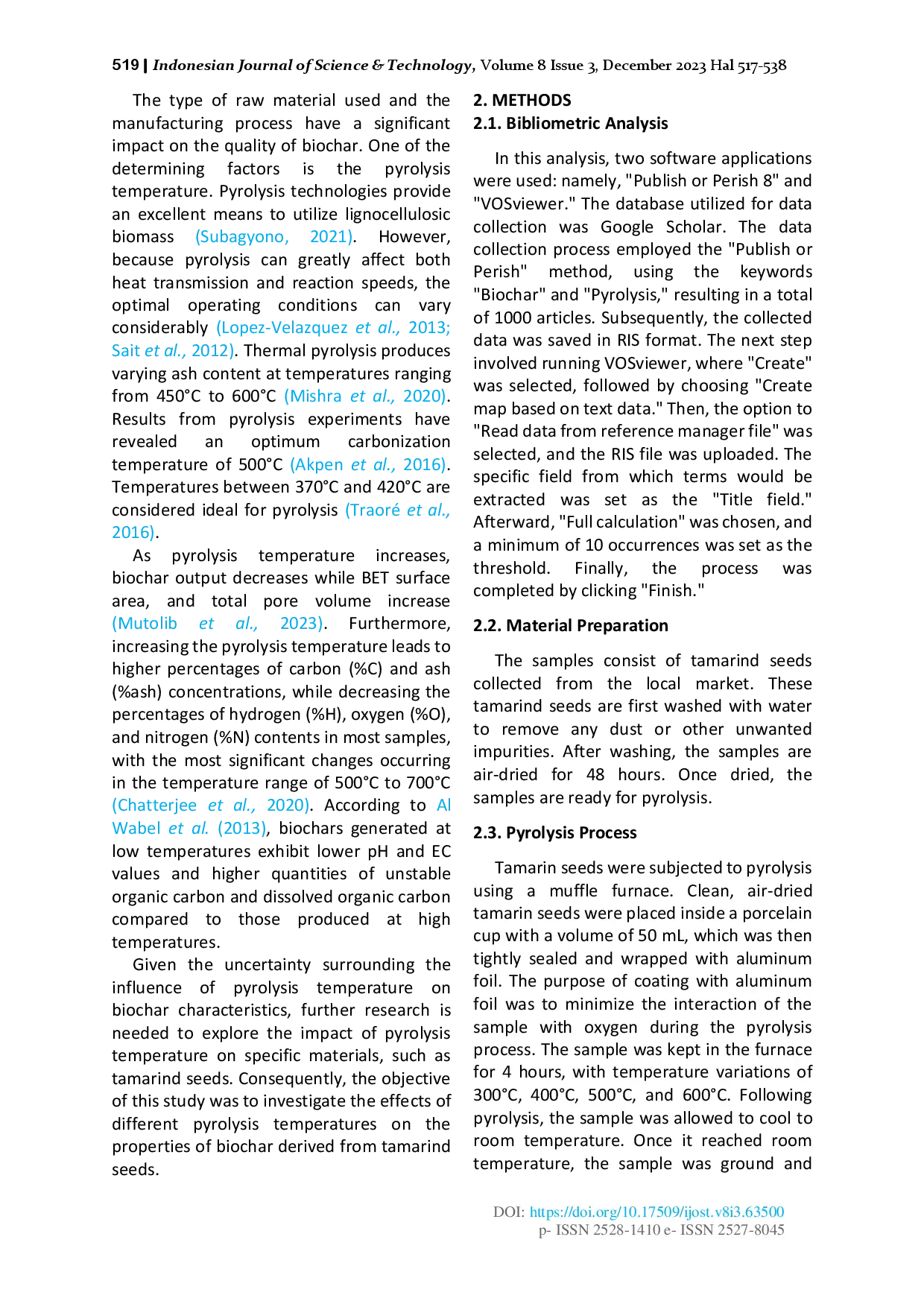 UPIUPI Penelitian ini bertujuan untuk mengkaji karakteristik biochar yang dihasilkan dari biji asam jawa pada suhu pirolisis yang berbeda. Hasil menunjukkan bahwaPenelitian ini bertujuan untuk mengkaji karakteristik biochar yang dihasilkan dari biji asam jawa pada suhu pirolisis yang berbeda. Hasil menunjukkan bahwa