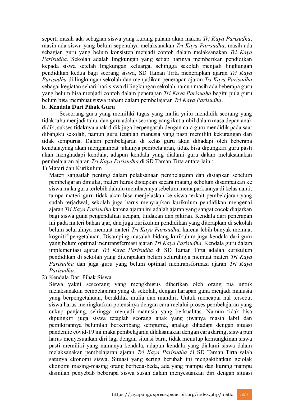 PENERBITPENERBIT Berdasarkan hasil pembahasan penelitian, maka dapat disimpulkan beberapa hal. Pembelajaran Tri Kaya Parisudha dan Budi Pekerti di SD Taman Tirta akan suksesBerdasarkan hasil pembahasan penelitian, maka dapat disimpulkan beberapa hal. Pembelajaran Tri Kaya Parisudha dan Budi Pekerti di SD Taman Tirta akan sukses