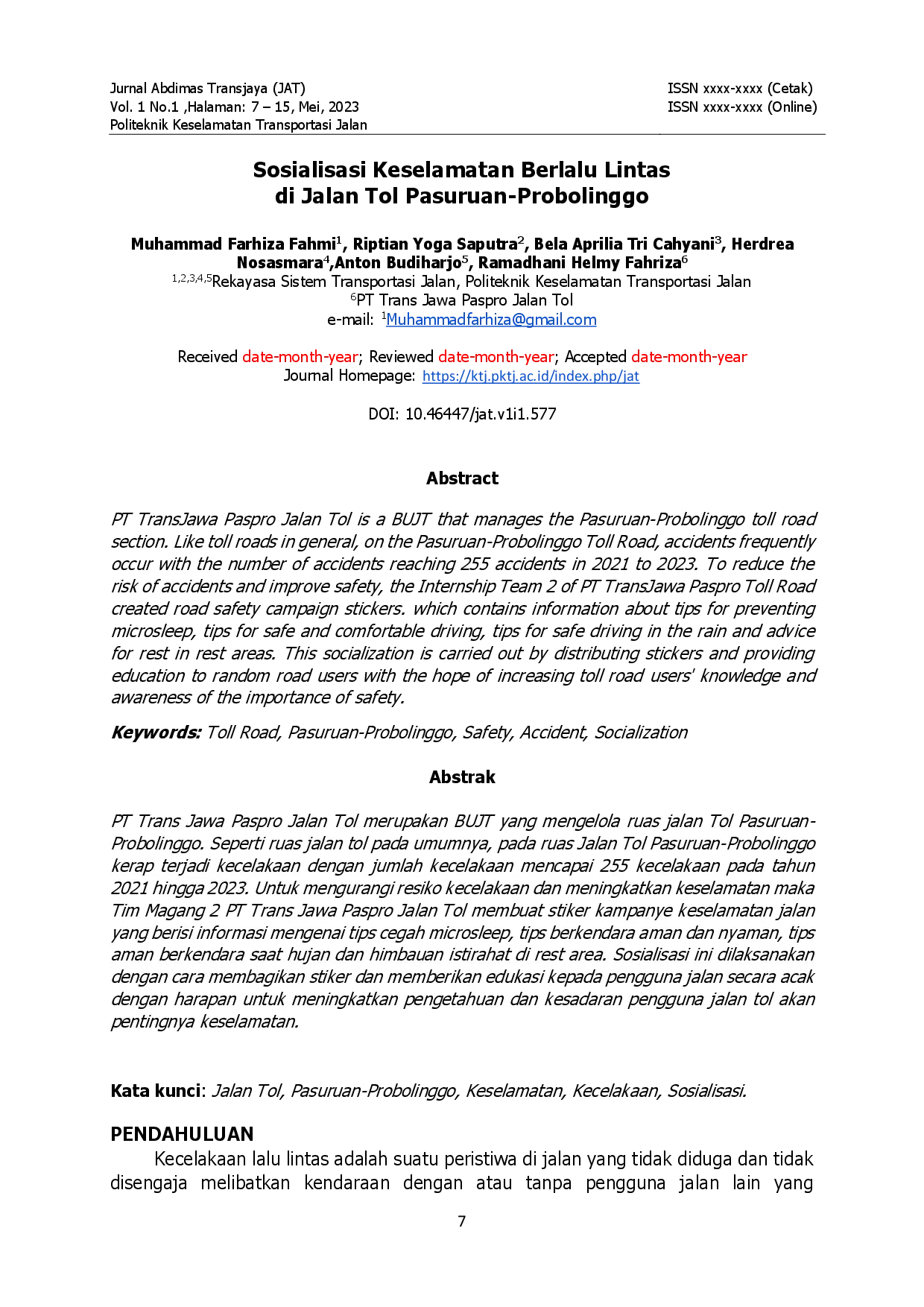 PKTJPKTJ Respon positif menunjukkan bahwa pendekatan edukatif melalui stiker efektif meningkatkan kesadaran keselamatan berkendara. Pengendara berharap kegiatanRespon positif menunjukkan bahwa pendekatan edukatif melalui stiker efektif meningkatkan kesadaran keselamatan berkendara. Pengendara berharap kegiatan
