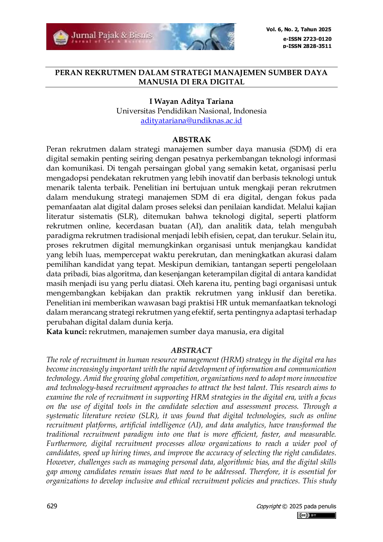 STPI PAJAKSTPI PAJAK Kesimpulan dari penelitian ini menunjukkan bahwa peran rekrutmen dalam strategi manajemen sumber daya manusia (SDM) semakin penting di era digital, terutamaKesimpulan dari penelitian ini menunjukkan bahwa peran rekrutmen dalam strategi manajemen sumber daya manusia (SDM) semakin penting di era digital, terutama