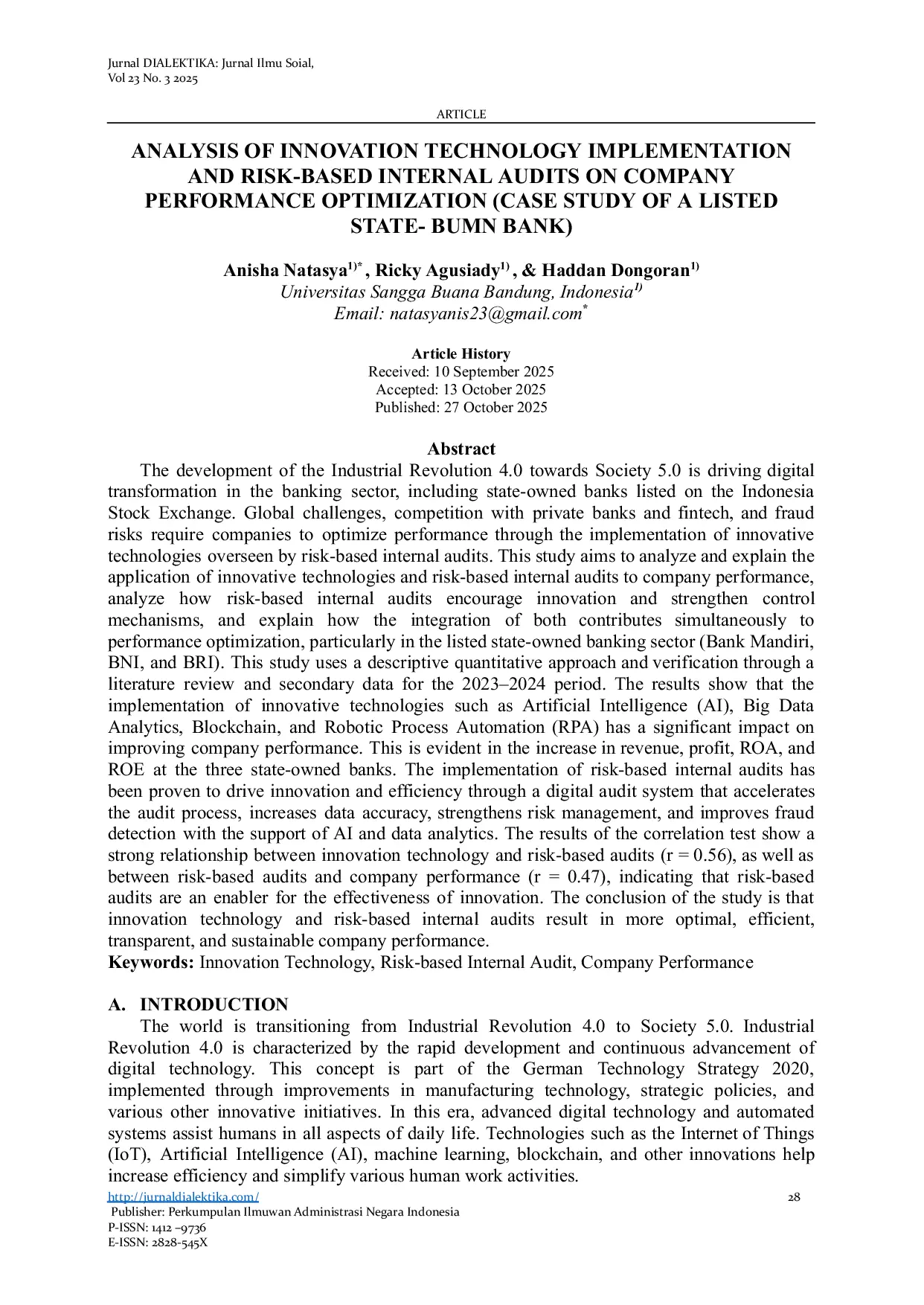 JURNALDIALEKTIKAJURNALDIALEKTIKA Tantangan global, persaingan dengan bank swasta dan fintech, serta risiko penipuan menuntut perusahaan untuk mengoptimalkan kinerja melalui implementasiTantangan global, persaingan dengan bank swasta dan fintech, serta risiko penipuan menuntut perusahaan untuk mengoptimalkan kinerja melalui implementasi