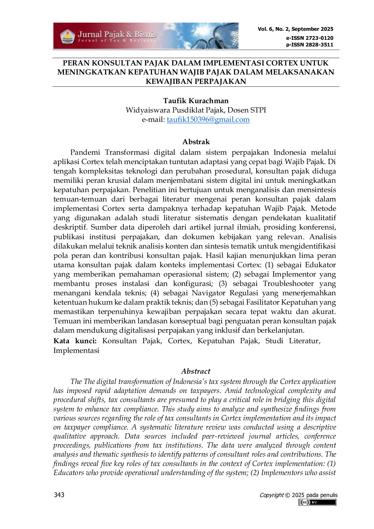 STPI PAJAKSTPI PAJAK Metode yang digunakan adalah studi literatur sistematis dengan pendekatan kualitatif deskriptif. Sumber data diperoleh dari artikel jurnal ilmiah, prosidingMetode yang digunakan adalah studi literatur sistematis dengan pendekatan kualitatif deskriptif. Sumber data diperoleh dari artikel jurnal ilmiah, prosiding