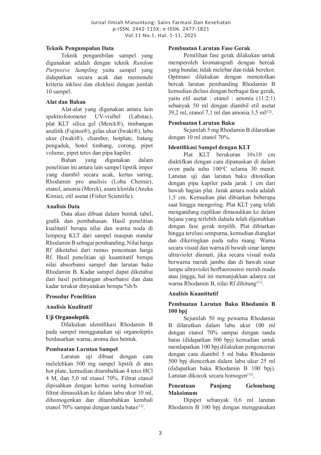 STIK SAMSTIK SAM Hasil penelitian menunjukkan bahwa sampel H memiliki nilai Rf yang mendekati dengan Rf baku Rhodamin B, yaitu 0,529 cm, sedangkan nilai Rf pembanding RhodaminHasil penelitian menunjukkan bahwa sampel H memiliki nilai Rf yang mendekati dengan Rf baku Rhodamin B, yaitu 0,529 cm, sedangkan nilai Rf pembanding Rhodamin