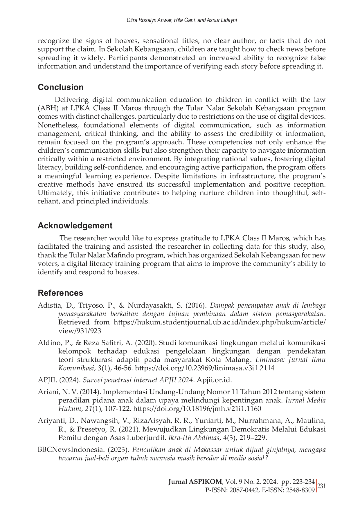 JURNALASPIKOMJURNALASPIKOM Penelitian ini merupakan studi kasus dengan teknik pengumpulan data melalui wawancara, observasi, dan dokumentasi selama kelas. Hasil penelitian menunjukkanPenelitian ini merupakan studi kasus dengan teknik pengumpulan data melalui wawancara, observasi, dan dokumentasi selama kelas. Hasil penelitian menunjukkan