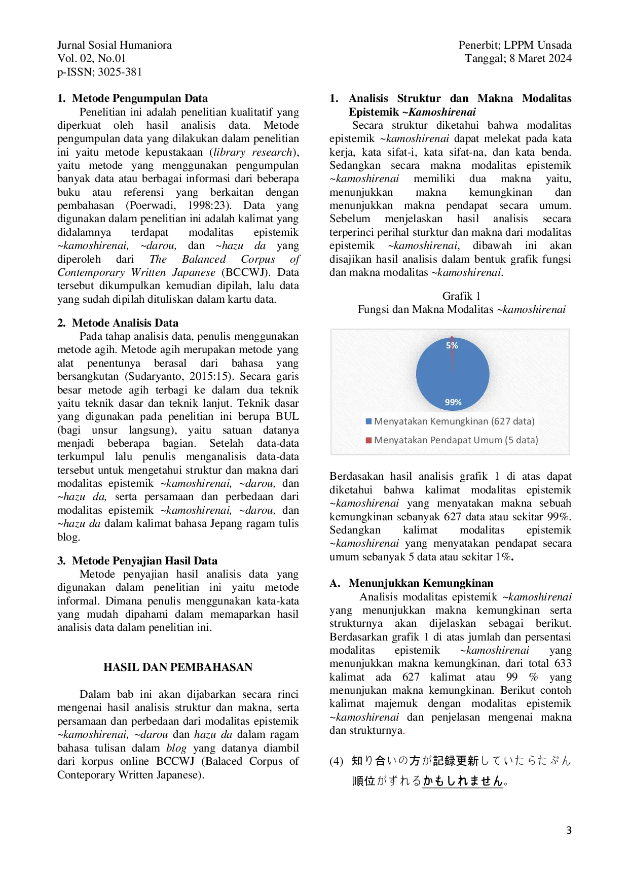 UNSADAUNSADA Data yang digunakan dalam penelitian ini merupakan ragam tulis dari korpus online BCCWJ (Balaced Corpus of Conteporary Written Japanese). Dari hasil analisisData yang digunakan dalam penelitian ini merupakan ragam tulis dari korpus online BCCWJ (Balaced Corpus of Conteporary Written Japanese). Dari hasil analisis