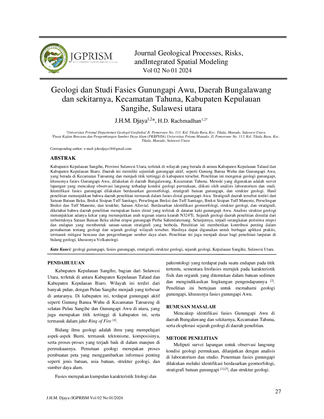 PRISMAPRISMA Susunan stratigrafi wilayah penelitian dimulai dari satuan batuan beku tertua, diikuti oleh unit-unit breksi‑tuff Santiago, breksi‑tuff Manente, danSusunan stratigrafi wilayah penelitian dimulai dari satuan batuan beku tertua, diikuti oleh unit-unit breksi‑tuff Santiago, breksi‑tuff Manente, dan