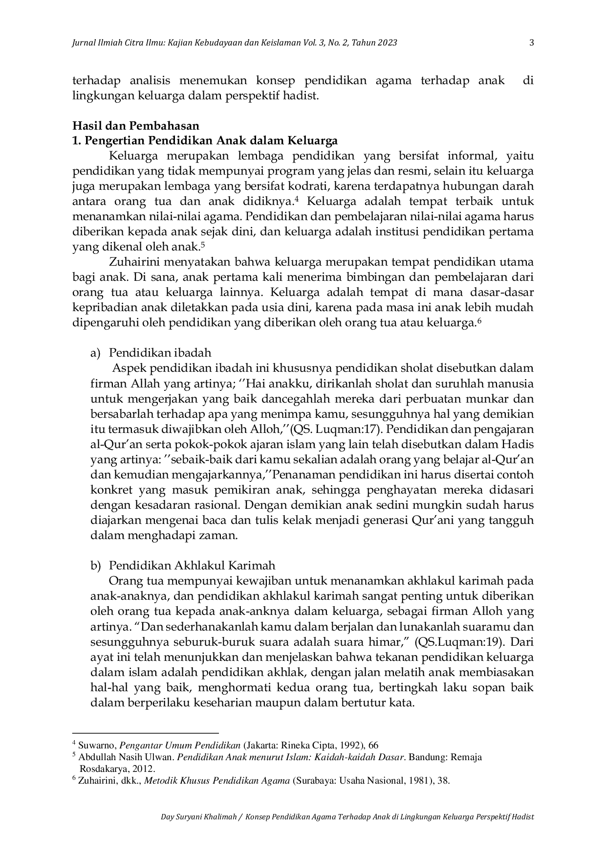INISNUINISNU Pendidikan anak dalam keluarga bertujuan agar anak dapat berkembang optimal dan bertahan hidup dengan baik. Hadis riwayat Imam Al Bukhori dan Imam AhmadPendidikan anak dalam keluarga bertujuan agar anak dapat berkembang optimal dan bertahan hidup dengan baik. Hadis riwayat Imam Al Bukhori dan Imam Ahmad