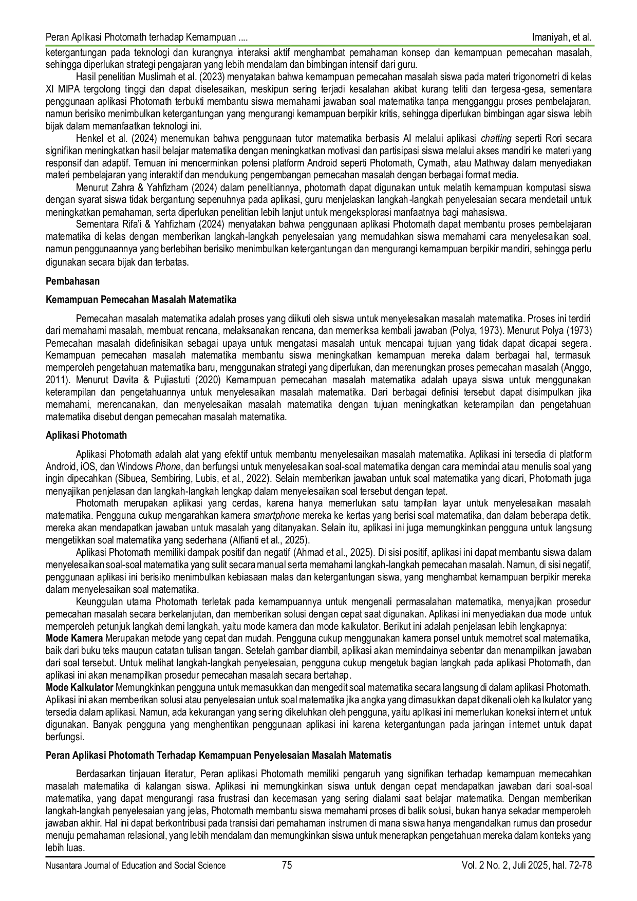 UNUKASEUNUKASE Hasil penelitian menunjukkan bahwa penggunaan Photomath dapat meningkatkan kemampuan pemecahan masalah matematika secara signifikan. Namun, aplikasi iniHasil penelitian menunjukkan bahwa penggunaan Photomath dapat meningkatkan kemampuan pemecahan masalah matematika secara signifikan. Namun, aplikasi ini