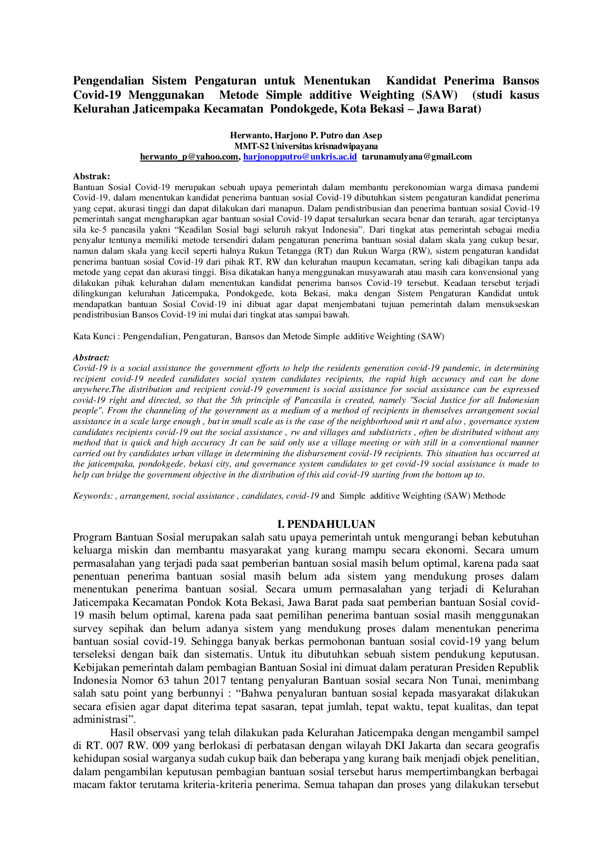 UNKRISUNKRIS Sistem pengaturan kandidat penerima bantuan sosial Covid-19 dari pihak RT, RW, dan kelurahan sering kali dilakukan tanpa metode yang cepat dan akurat,Sistem pengaturan kandidat penerima bantuan sosial Covid-19 dari pihak RT, RW, dan kelurahan sering kali dilakukan tanpa metode yang cepat dan akurat,