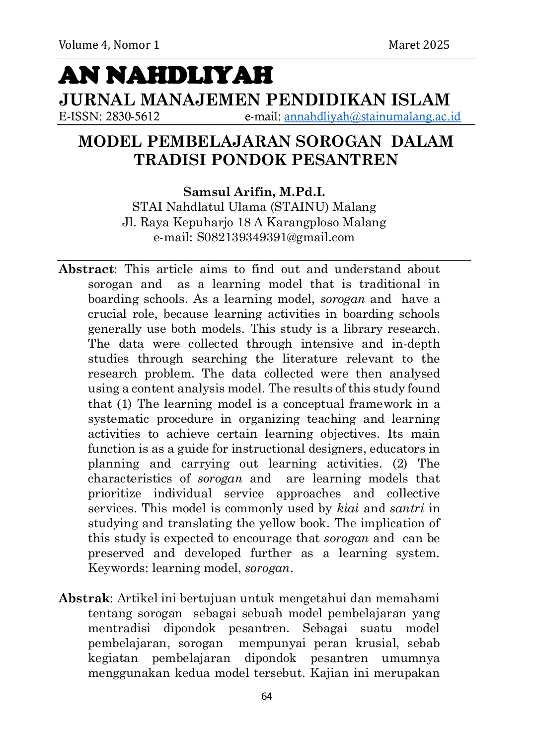 STAINU MALANGSTAINU MALANG Hasil kajian menemukan bahwa (1) model pembelajaran merupakan kerangka konseptual dalam prosedur sistematik dalam mengorganisasikan kegiatan belajar mengajarHasil kajian menemukan bahwa (1) model pembelajaran merupakan kerangka konseptual dalam prosedur sistematik dalam mengorganisasikan kegiatan belajar mengajar