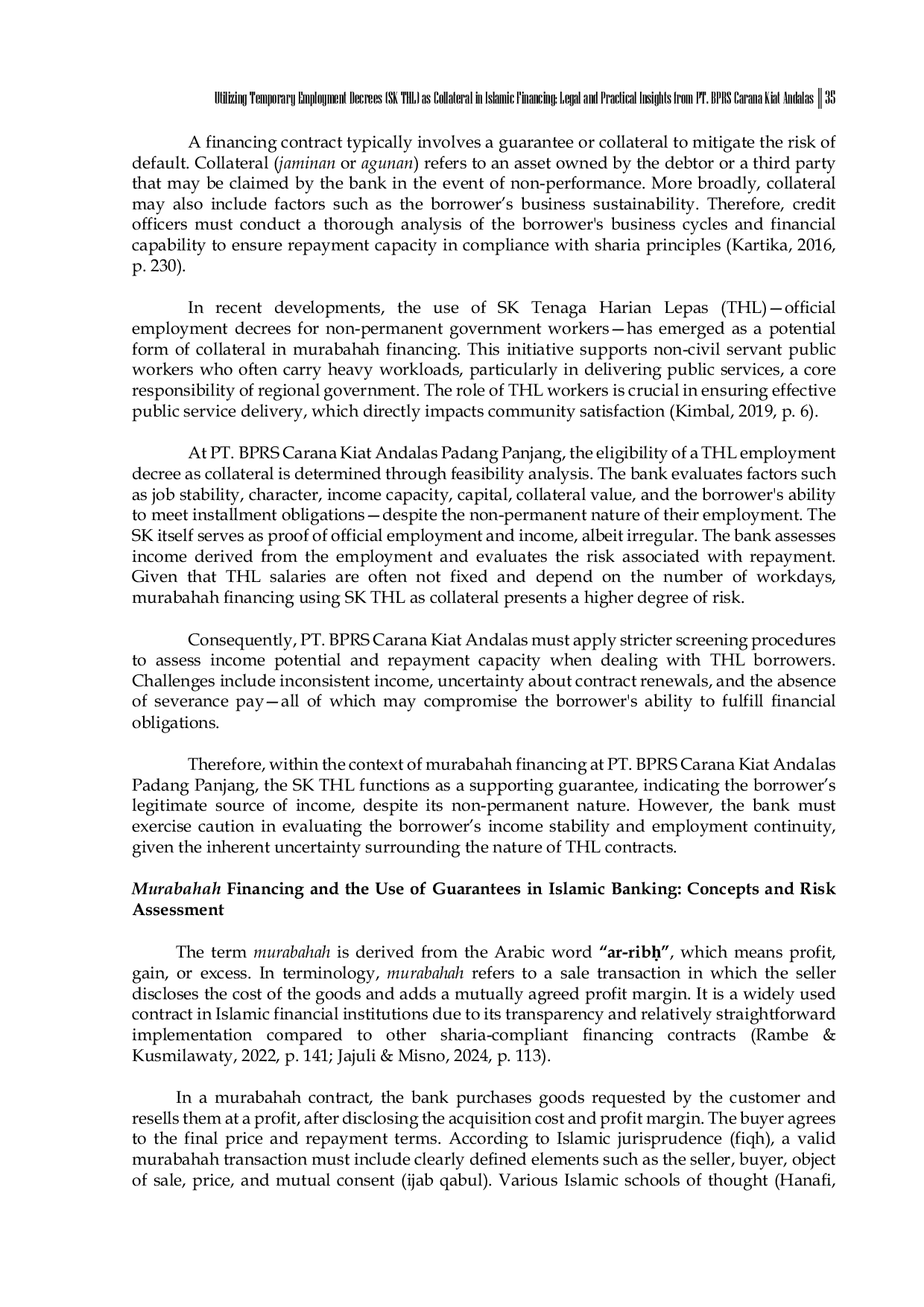 UINMYBATUSANGKARUINMYBATUSANGKAR Hasil penelitian menunjukkan bahwa meskipun SK dapat berfungsi sebagai jaminan yang sah, diperlukan analisis mendalam terhadap siklus bisnis debitur danHasil penelitian menunjukkan bahwa meskipun SK dapat berfungsi sebagai jaminan yang sah, diperlukan analisis mendalam terhadap siklus bisnis debitur dan