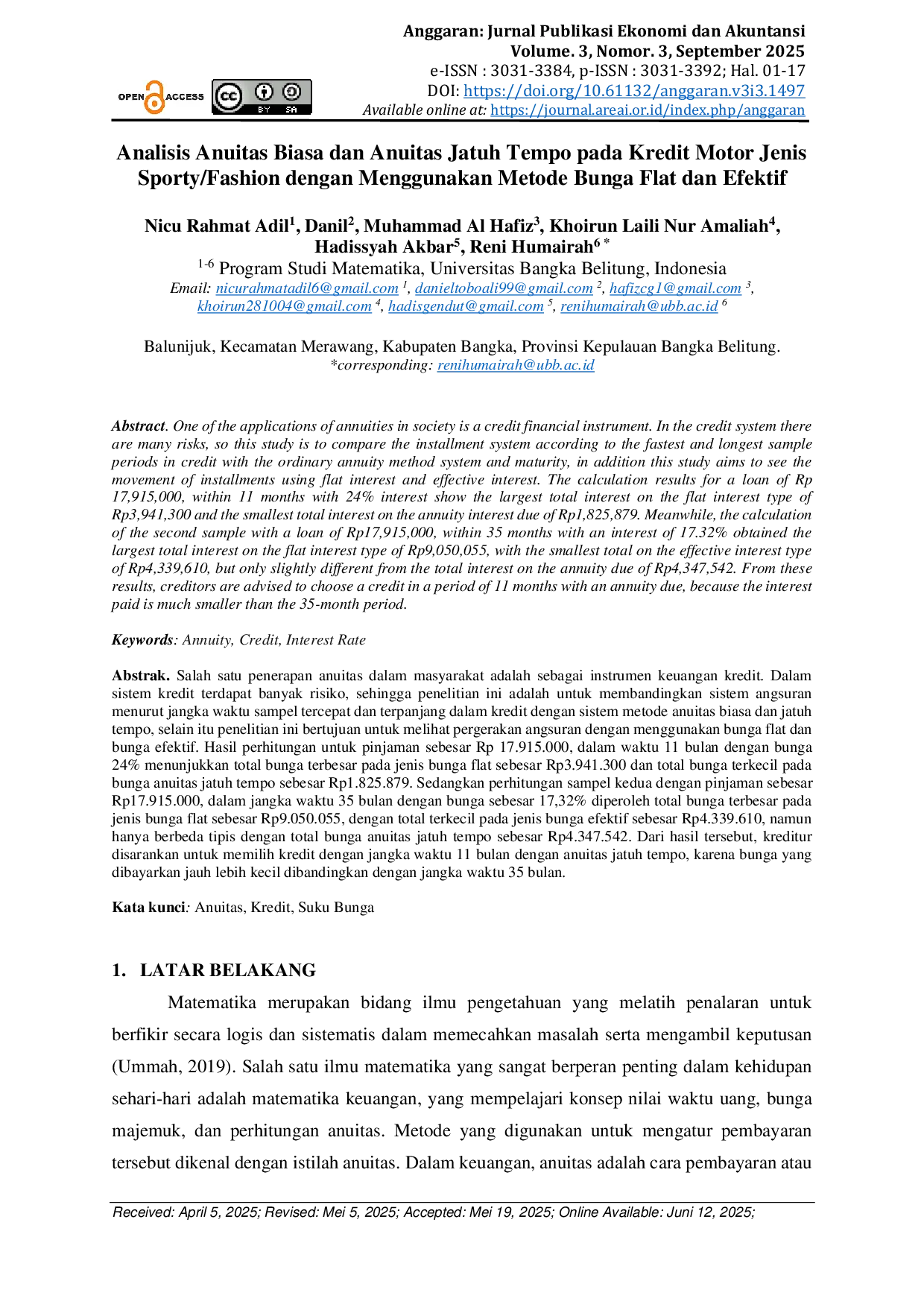 AREAIAREAI Hasil perhitungan untuk pinjaman sebesar Rp 17.915.000, dalam waktu 11 bulan dengan bunga 24% menunjukkan total bunga terbesar pada jenis bunga flat sebesarHasil perhitungan untuk pinjaman sebesar Rp 17.915.000, dalam waktu 11 bulan dengan bunga 24% menunjukkan total bunga terbesar pada jenis bunga flat sebesar