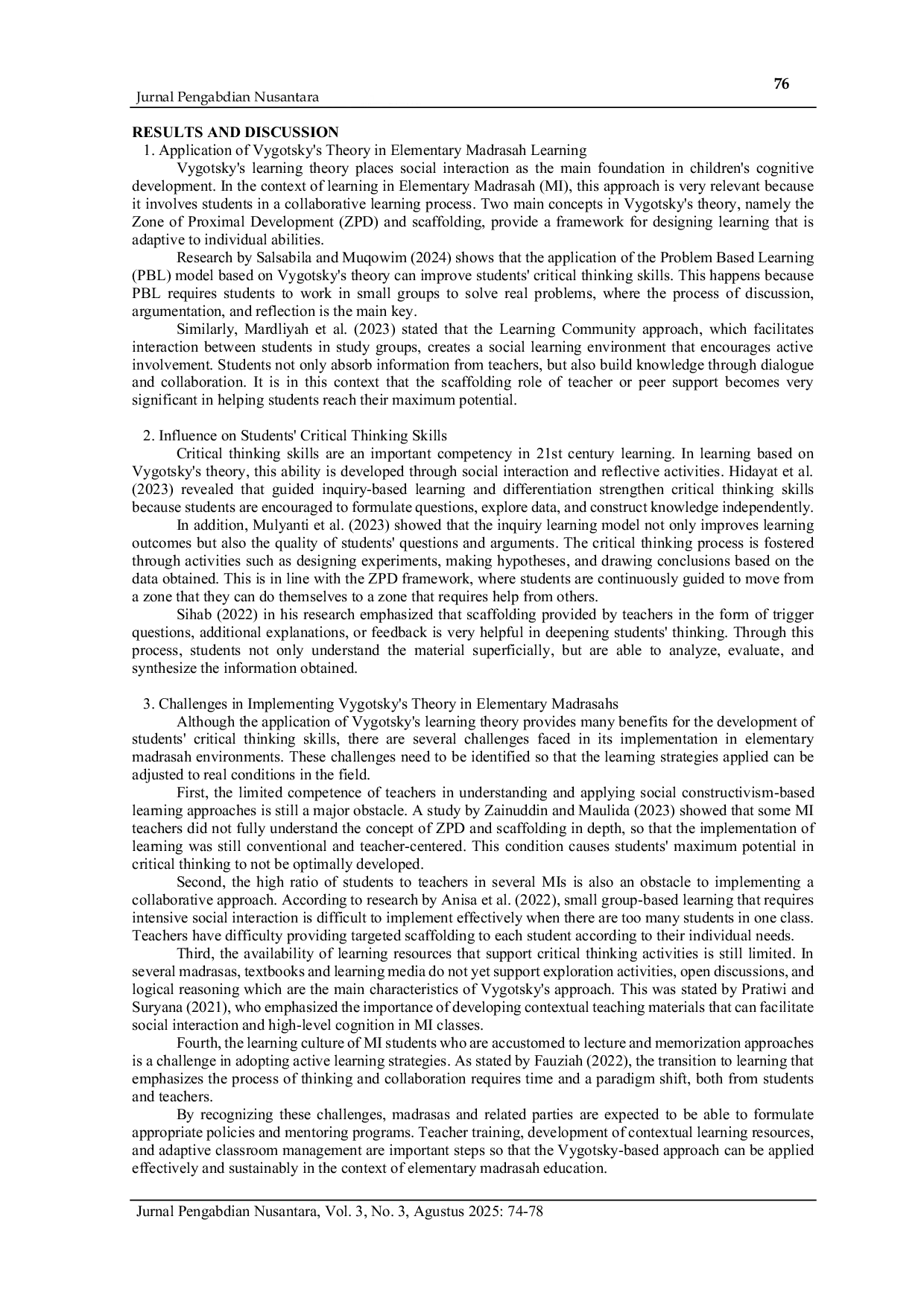 KAMPUNGJURNALKAMPUNGJURNAL Hasil studi dari berbagai literatur pada tahun 2020–2024 menunjukkan bahwa pendekatan pembelajaran berbasis teori Vygotsky, seperti Problem Based LearningHasil studi dari berbagai literatur pada tahun 2020–2024 menunjukkan bahwa pendekatan pembelajaran berbasis teori Vygotsky, seperti Problem Based Learning