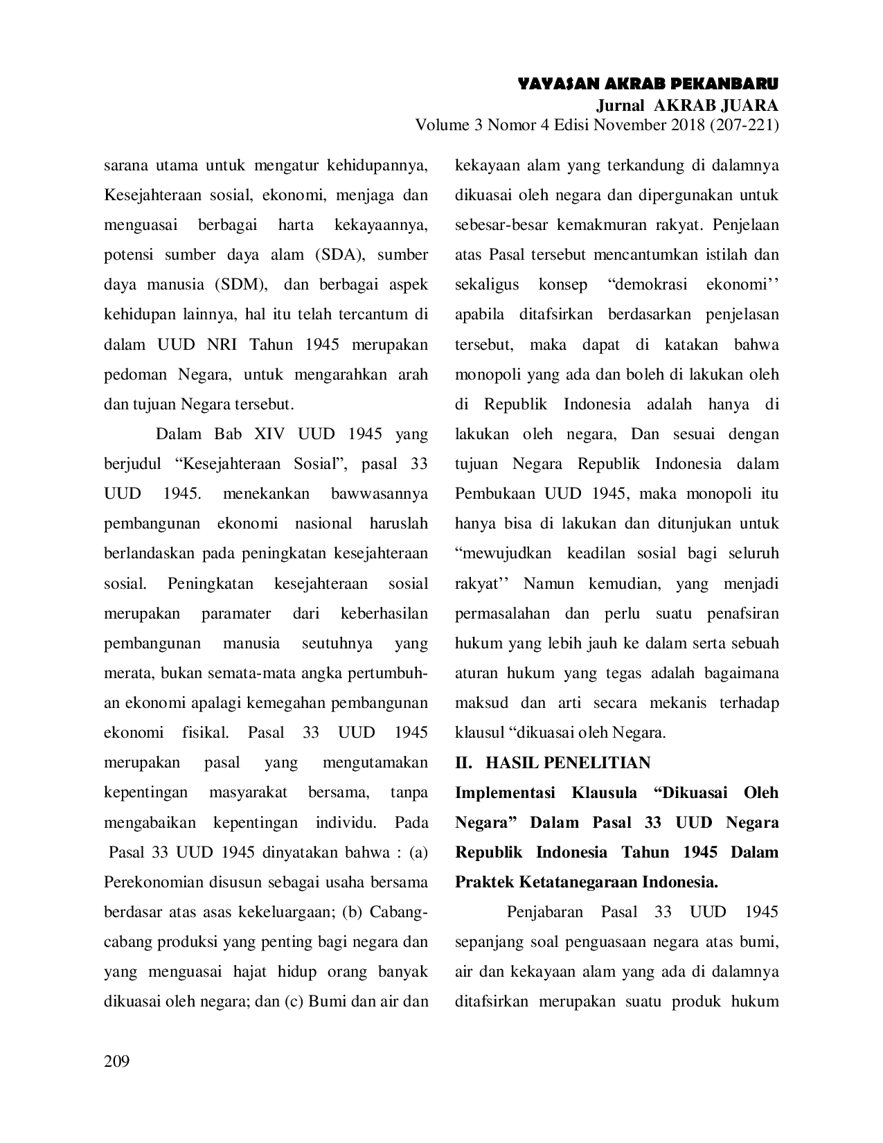 AKRABJUARAAKRABJUARA Dengan menggunaan model analisis deskriptif kualitatif sebagai pisau analisis. Subjek penelitiannya adalah Pasal 33 UUD 1945 terutama pada klausula “dikuasaiDengan menggunaan model analisis deskriptif kualitatif sebagai pisau analisis. Subjek penelitiannya adalah Pasal 33 UUD 1945 terutama pada klausula “dikuasai