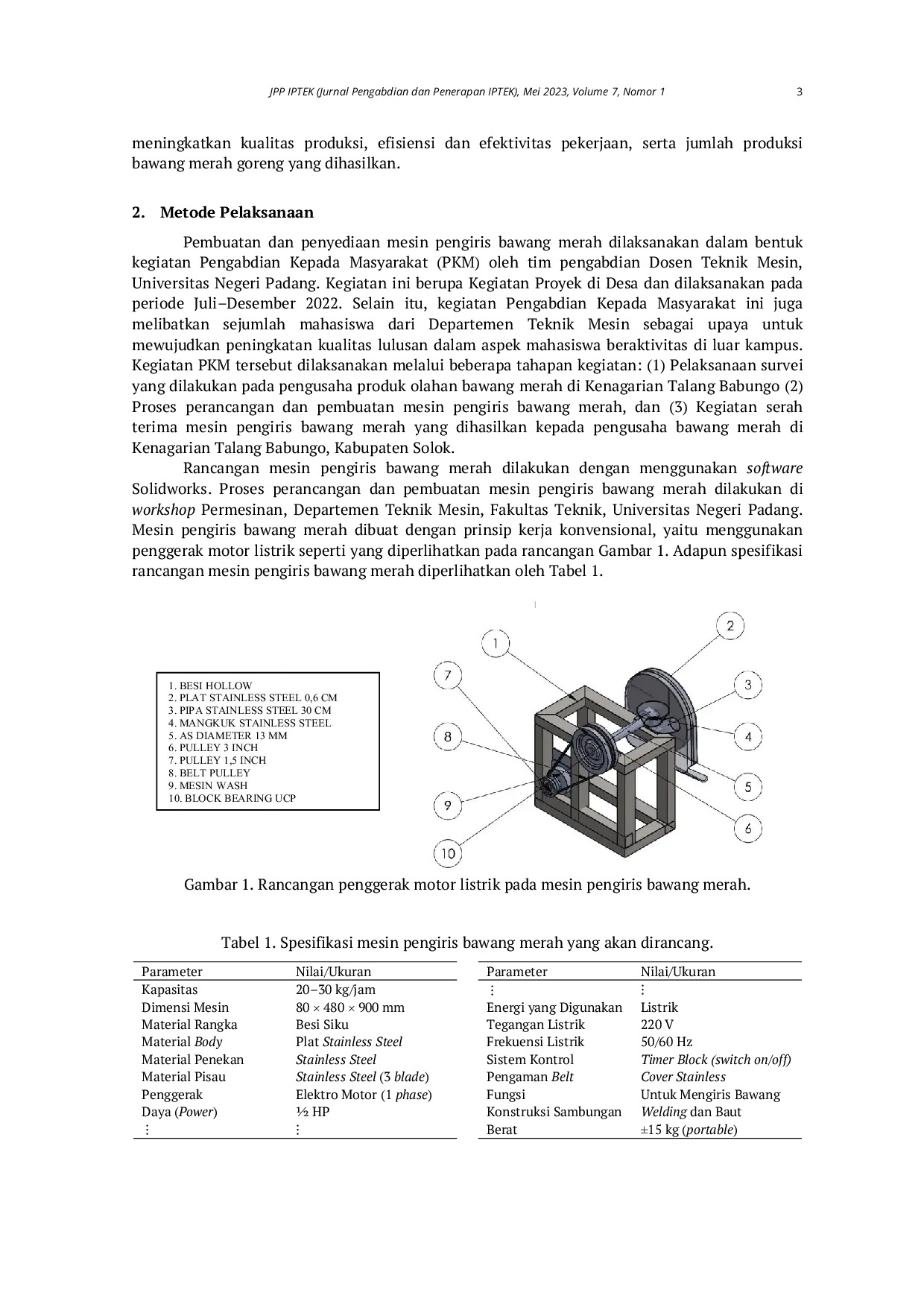 ITATSITATS Kegiatan ini telah menghasilkan suatu produk luaran berupa mesin pengiris bawang merah dengan mengimplementasikan teknologi tepat guna yang sederhana danKegiatan ini telah menghasilkan suatu produk luaran berupa mesin pengiris bawang merah dengan mengimplementasikan teknologi tepat guna yang sederhana dan