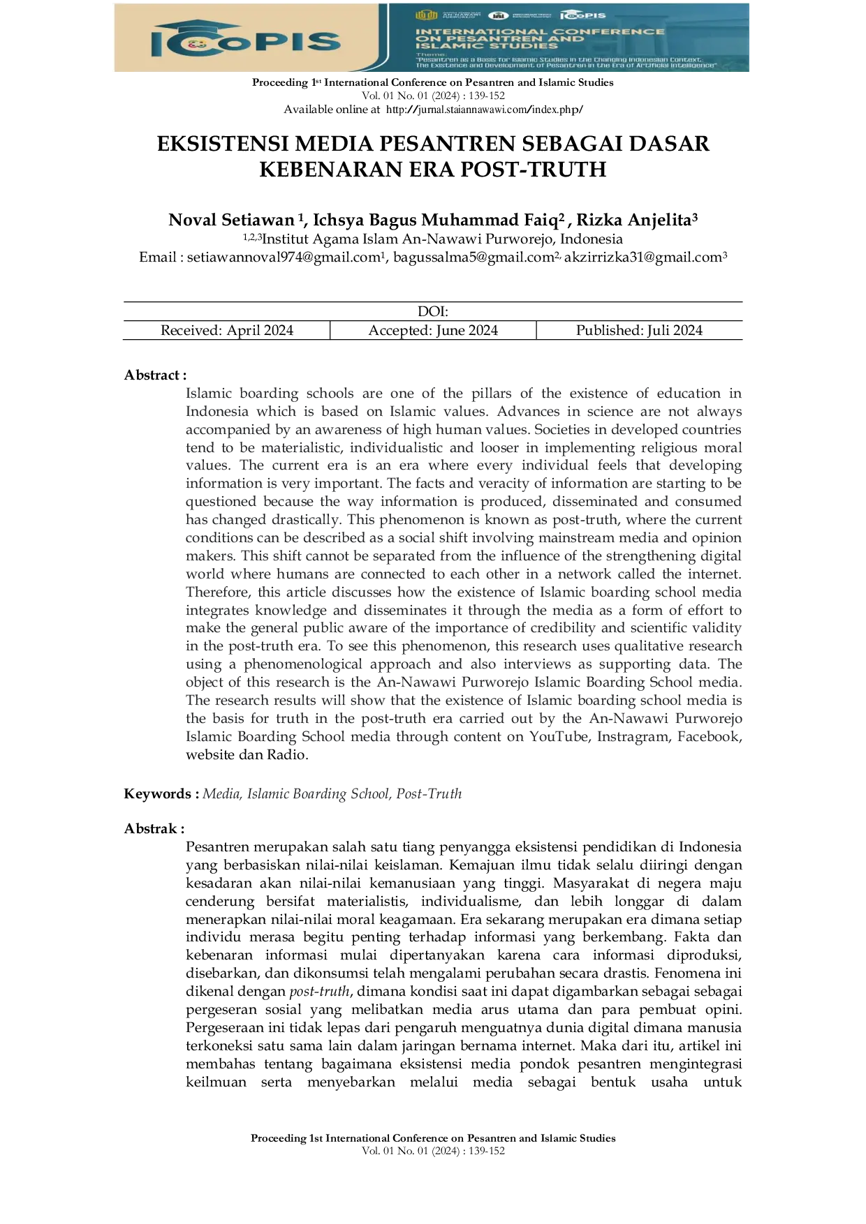 IAIANNAWAWIIAIANNAWAWI Pesantren merupakan salah satu tiang penyangga eksistensi pendidikan di Indonesia yang berbasiskan nilai-nilai keislaman. Kemajuan ilmu tidak selalu diiringiPesantren merupakan salah satu tiang penyangga eksistensi pendidikan di Indonesia yang berbasiskan nilai-nilai keislaman. Kemajuan ilmu tidak selalu diiringi