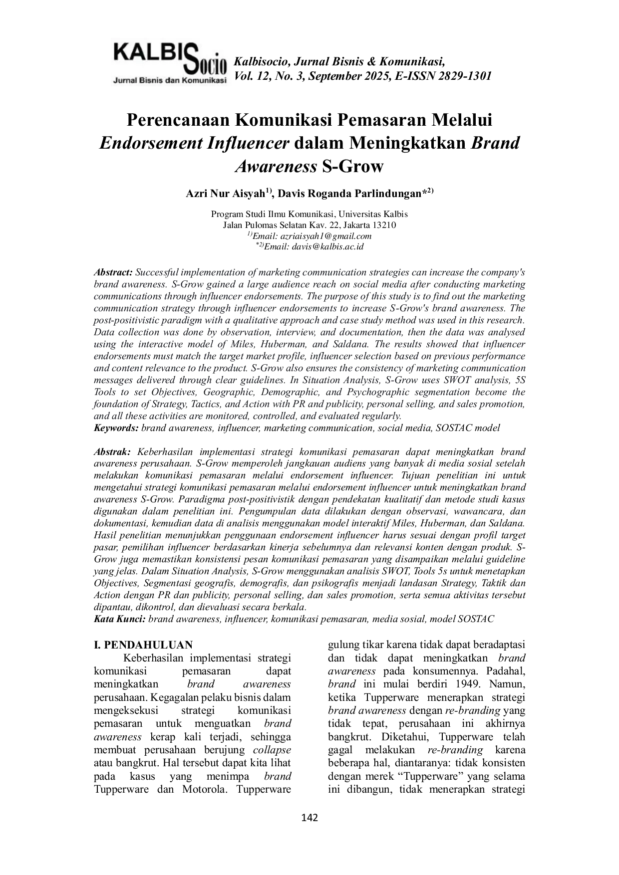 KALBISKALBIS Keberhasilan implementasi strategi komunikasi pemasaran dapat meningkatkan brand awareness perusahaan. S-Grow memperoleh jangkauan audiens yang banyakKeberhasilan implementasi strategi komunikasi pemasaran dapat meningkatkan brand awareness perusahaan. S-Grow memperoleh jangkauan audiens yang banyak