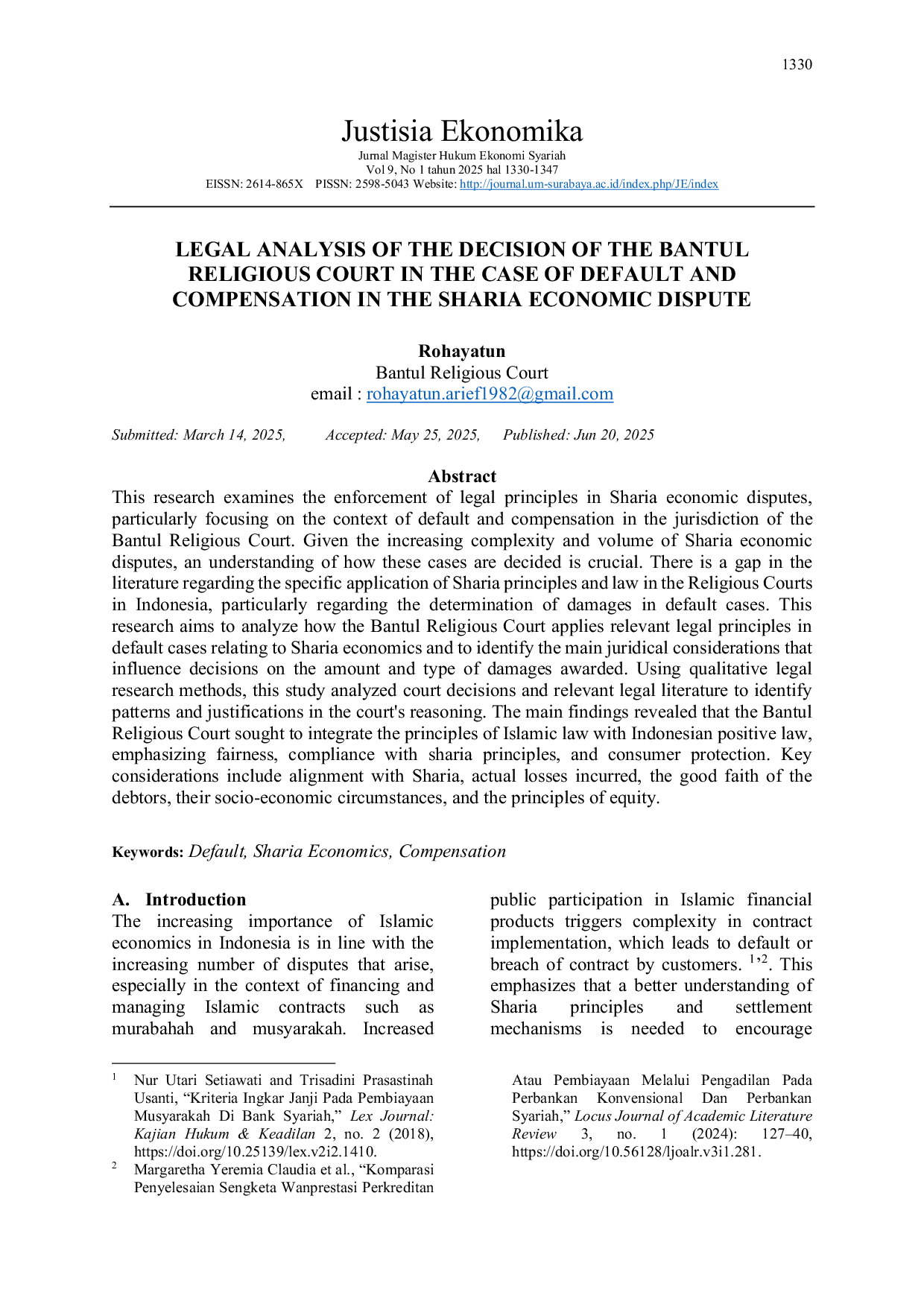 UM SURABAYAUM SURABAYA Dalam kasus wanprestasi, Pengadilan Agama menekankan keadilan, kepatuhan pada prinsip syariah, dan perlindungan konsumen sebagai landasan keputusan. PenelitianDalam kasus wanprestasi, Pengadilan Agama menekankan keadilan, kepatuhan pada prinsip syariah, dan perlindungan konsumen sebagai landasan keputusan. Penelitian