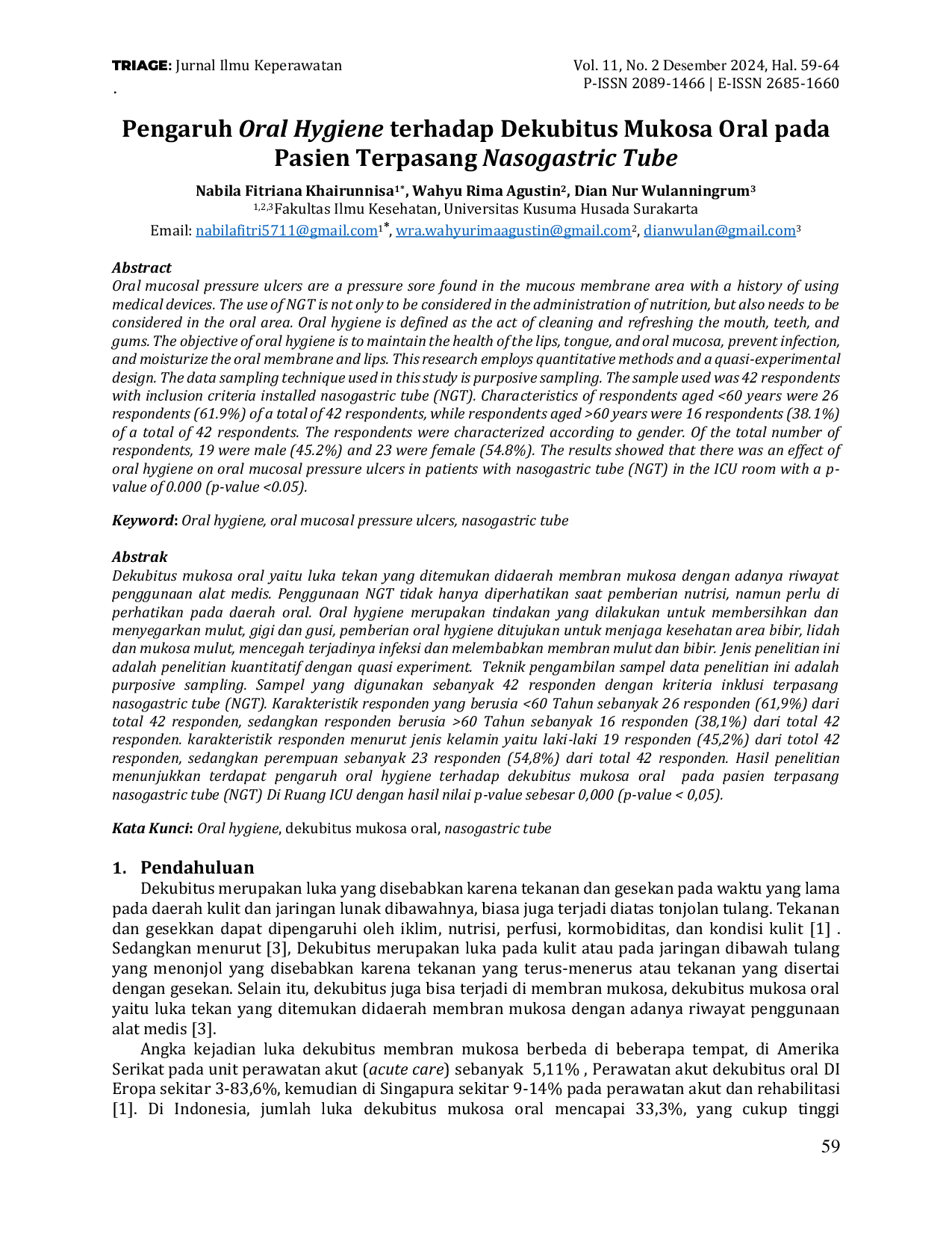 UMKLAUMKLA Dekubitus mukosa oral yaitu luka tekan yang ditemukan didaerah membran mukosa dengan adanya riwayat penggunaan alat medis. Penggunaan NGT tidak hanya diperhatikanDekubitus mukosa oral yaitu luka tekan yang ditemukan didaerah membran mukosa dengan adanya riwayat penggunaan alat medis. Penggunaan NGT tidak hanya diperhatikan