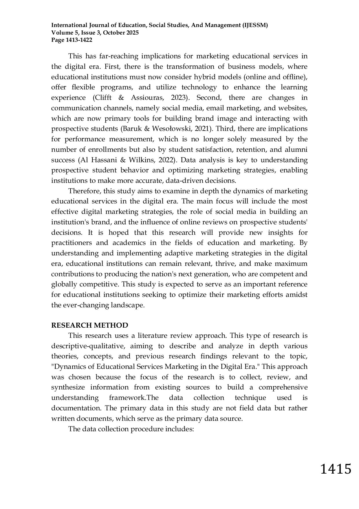 LPPPIPUBLISHINGLPPPIPUBLISHING Berdasarkan tinjauan pustaka, disimpulkan bahwa pemasaran layanan pendidikan di era digital telah bergeser dari pendekatan transaksional ke pendekatanBerdasarkan tinjauan pustaka, disimpulkan bahwa pemasaran layanan pendidikan di era digital telah bergeser dari pendekatan transaksional ke pendekatan