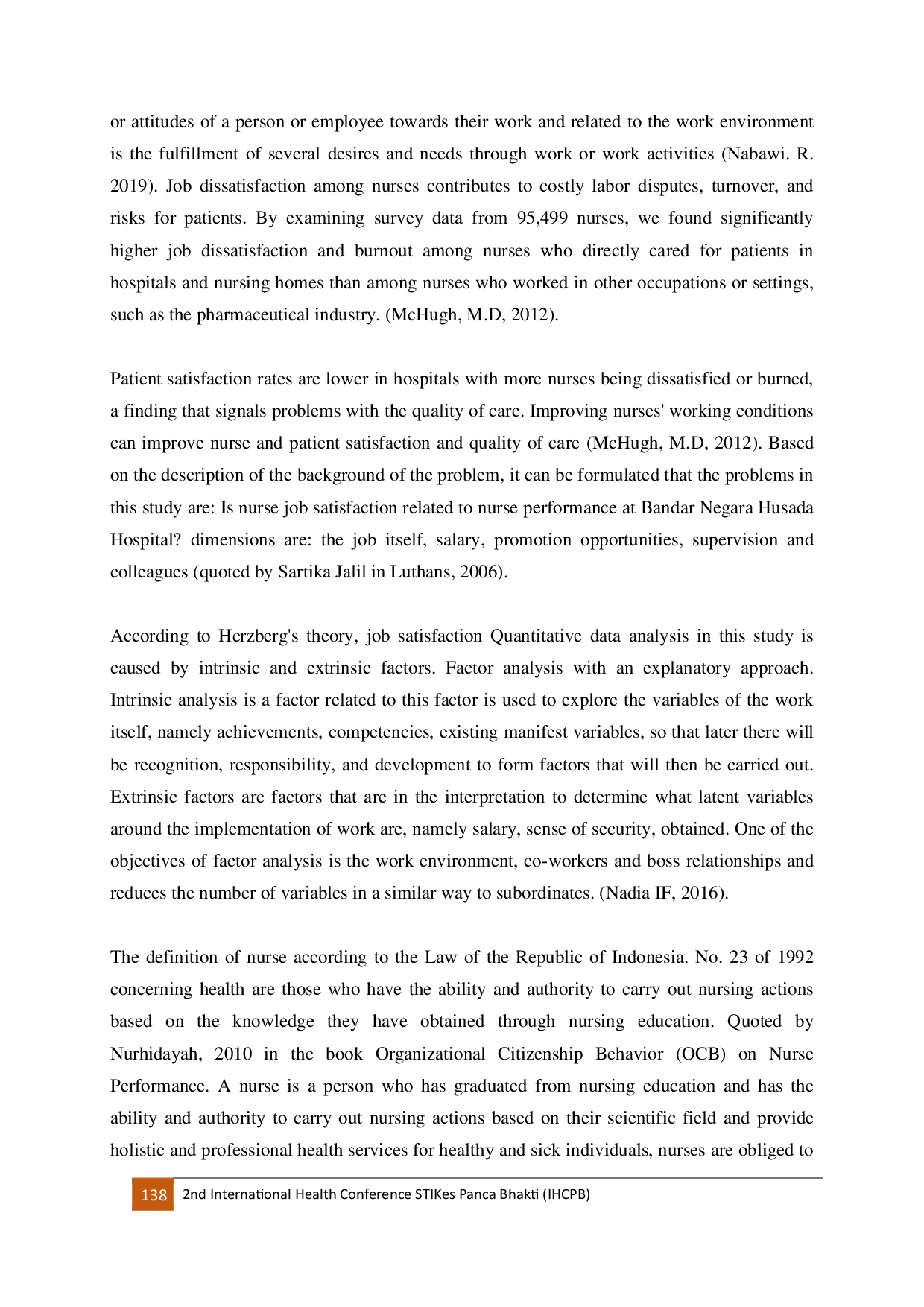 PANCABHAKTIPANCABHAKTI Hasil penelitian disajikan dalam tabel dan narasi, menunjukkan bahwa variabel kepuasan kerja perawat berhubungan signifikan dengan kinerja perawat di rumahHasil penelitian disajikan dalam tabel dan narasi, menunjukkan bahwa variabel kepuasan kerja perawat berhubungan signifikan dengan kinerja perawat di rumah