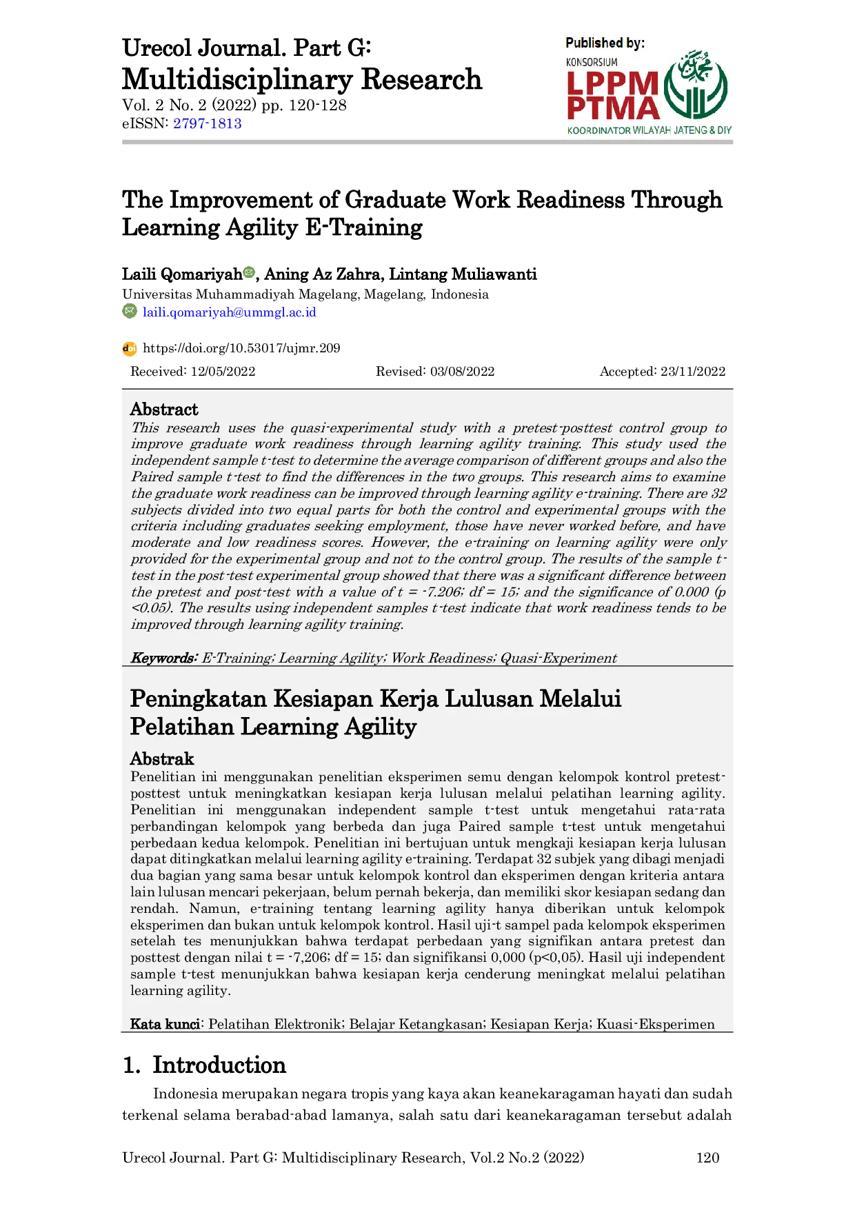 URECOLURECOL Penelitian ini menggunakan penelitian eksperimen semu dengan kelompok kontrol pretest-posttest untuk meningkatkan kesiapan kerja lulusan melalui pelatihanPenelitian ini menggunakan penelitian eksperimen semu dengan kelompok kontrol pretest-posttest untuk meningkatkan kesiapan kerja lulusan melalui pelatihan