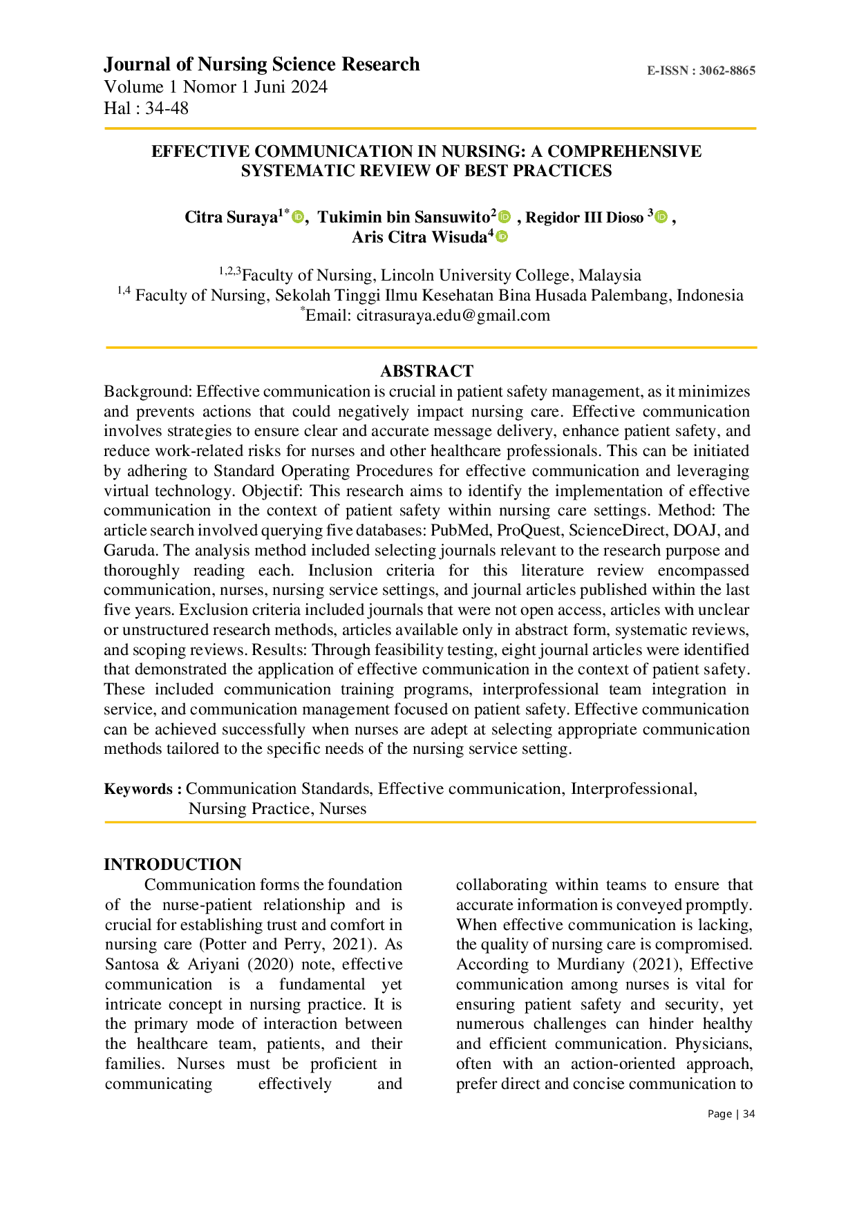 ICIICI Kualitas komunikasi perawat-pasien sangat penting untuk memastikan keamanan dan kenyamanan pasien. Penelitian ini menemukan bahwa pelatihan, panduan komunikasiKualitas komunikasi perawat-pasien sangat penting untuk memastikan keamanan dan kenyamanan pasien. Penelitian ini menemukan bahwa pelatihan, panduan komunikasi