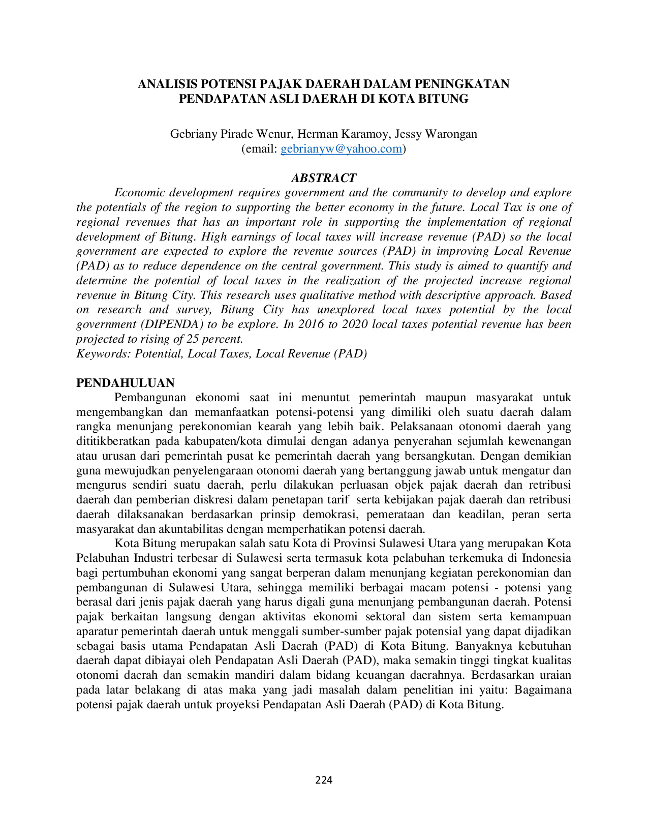 UNSRATUNSRAT Namum presentase kontribusi pajak daerah terhadap Pendapatan Asli Daerah (PAD) mengalami fluktuasi dari tahun ke tahun. Penerimaan pajak daerah Kota BitungNamum presentase kontribusi pajak daerah terhadap Pendapatan Asli Daerah (PAD) mengalami fluktuasi dari tahun ke tahun. Penerimaan pajak daerah Kota Bitung