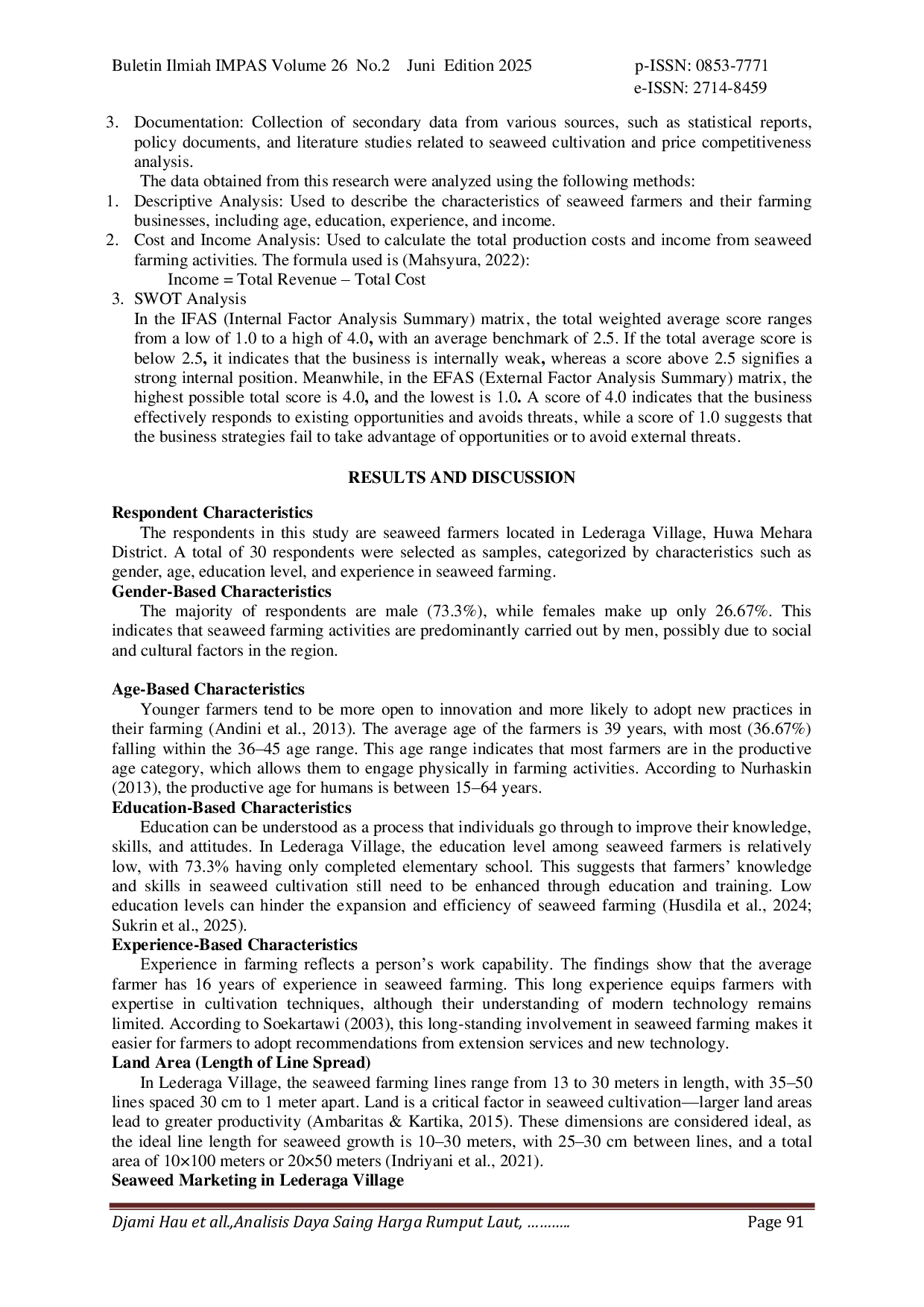 UNDANAUNDANA Analisis data meliputi analisis deskriptif kualitatif, analisis biaya dan pendapatan, serta analisis SWOT. Hasil penelitian menunjukkan bahwa usaha budidayaAnalisis data meliputi analisis deskriptif kualitatif, analisis biaya dan pendapatan, serta analisis SWOT. Hasil penelitian menunjukkan bahwa usaha budidaya