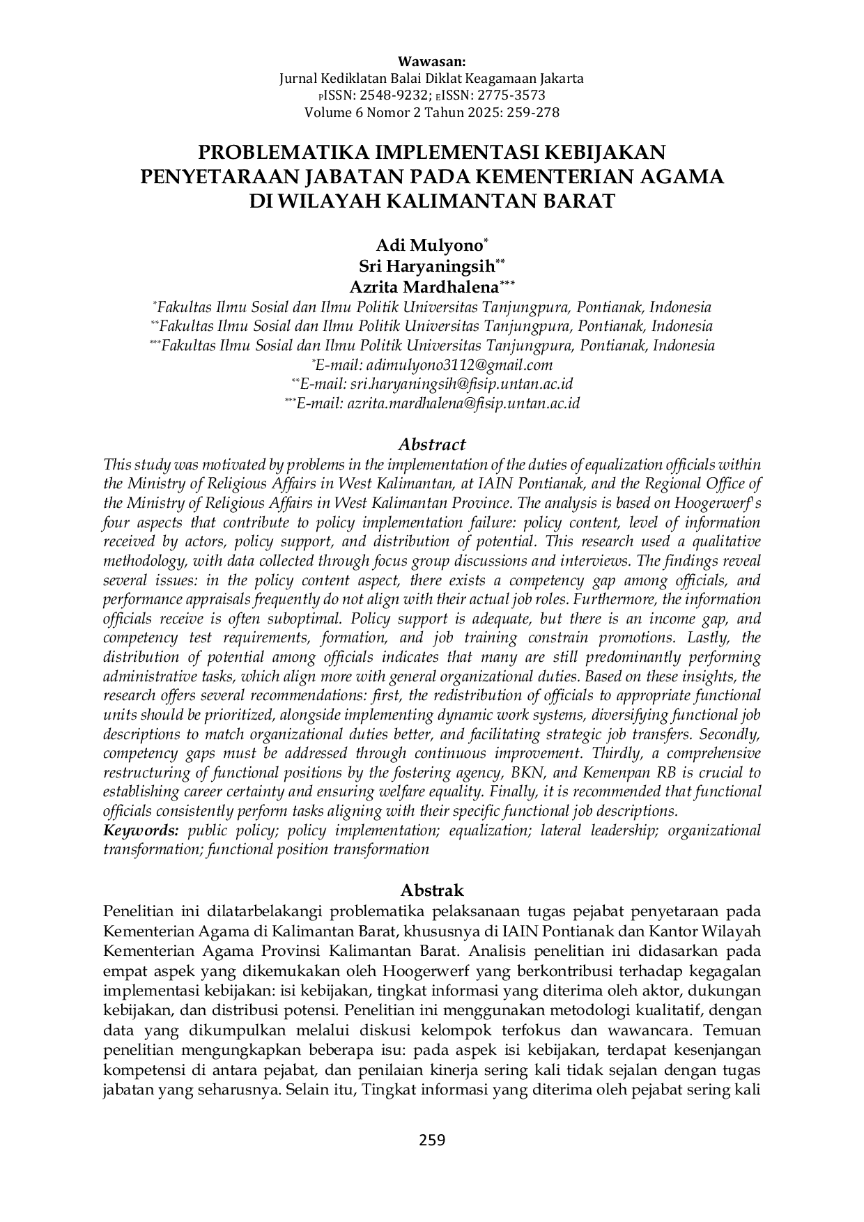 BDKJAKARTABDKJAKARTA Implementasi kebijakan penyetaraan jabatan di IAIN Pontianak dan Kantor Wilayah Kementerian Agama Kalimantan Barat telah mentransformasikan 43 jabatanImplementasi kebijakan penyetaraan jabatan di IAIN Pontianak dan Kantor Wilayah Kementerian Agama Kalimantan Barat telah mentransformasikan 43 jabatan