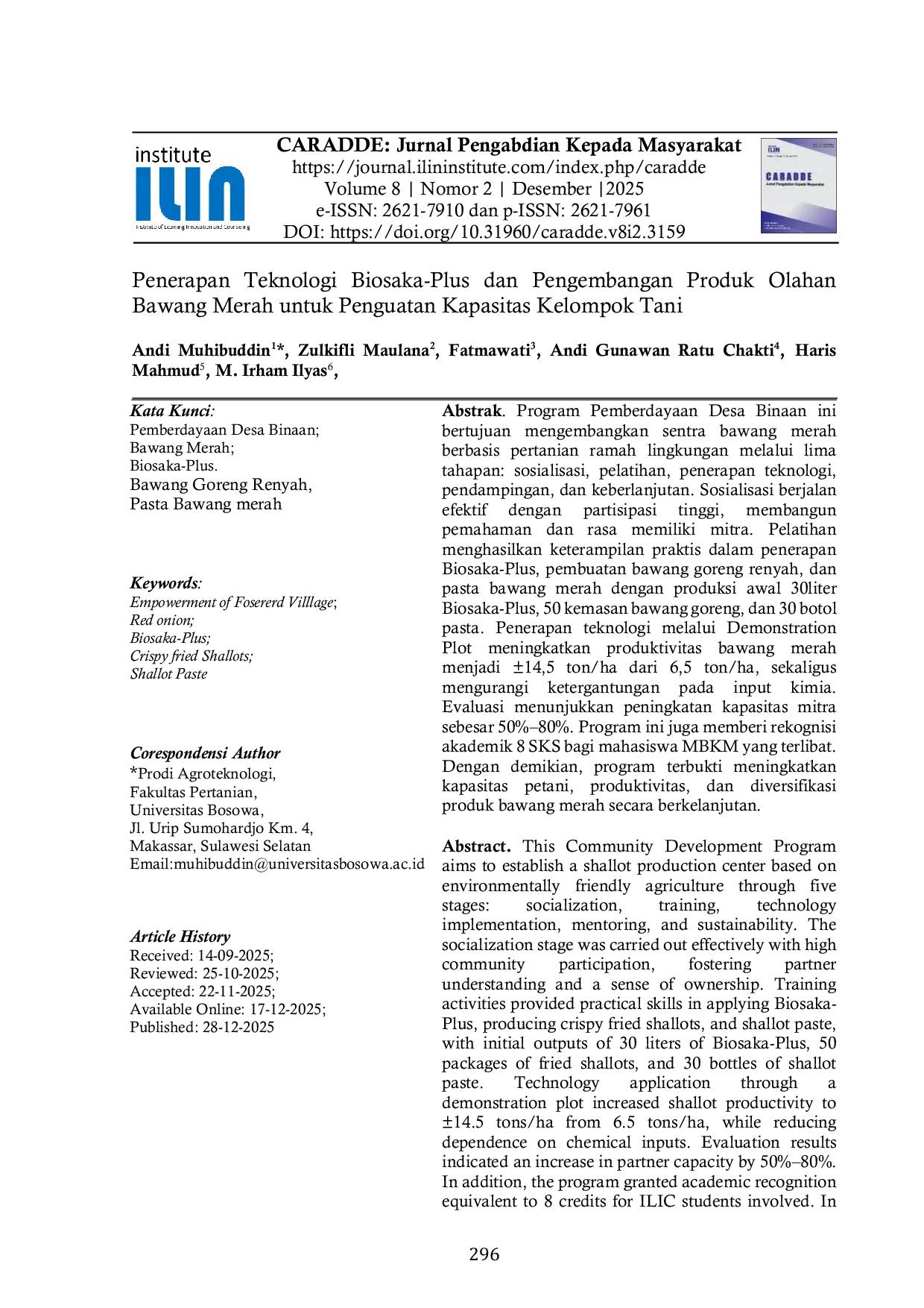 ILININSTITUTEILININSTITUTE Program Pemberdayaan Desa Binaan ini bertujuan mengembangkan sentra bawang merah berbasis pertanian ramah lingkungan melalui lima tahapan: sosialisasi,Program Pemberdayaan Desa Binaan ini bertujuan mengembangkan sentra bawang merah berbasis pertanian ramah lingkungan melalui lima tahapan: sosialisasi,