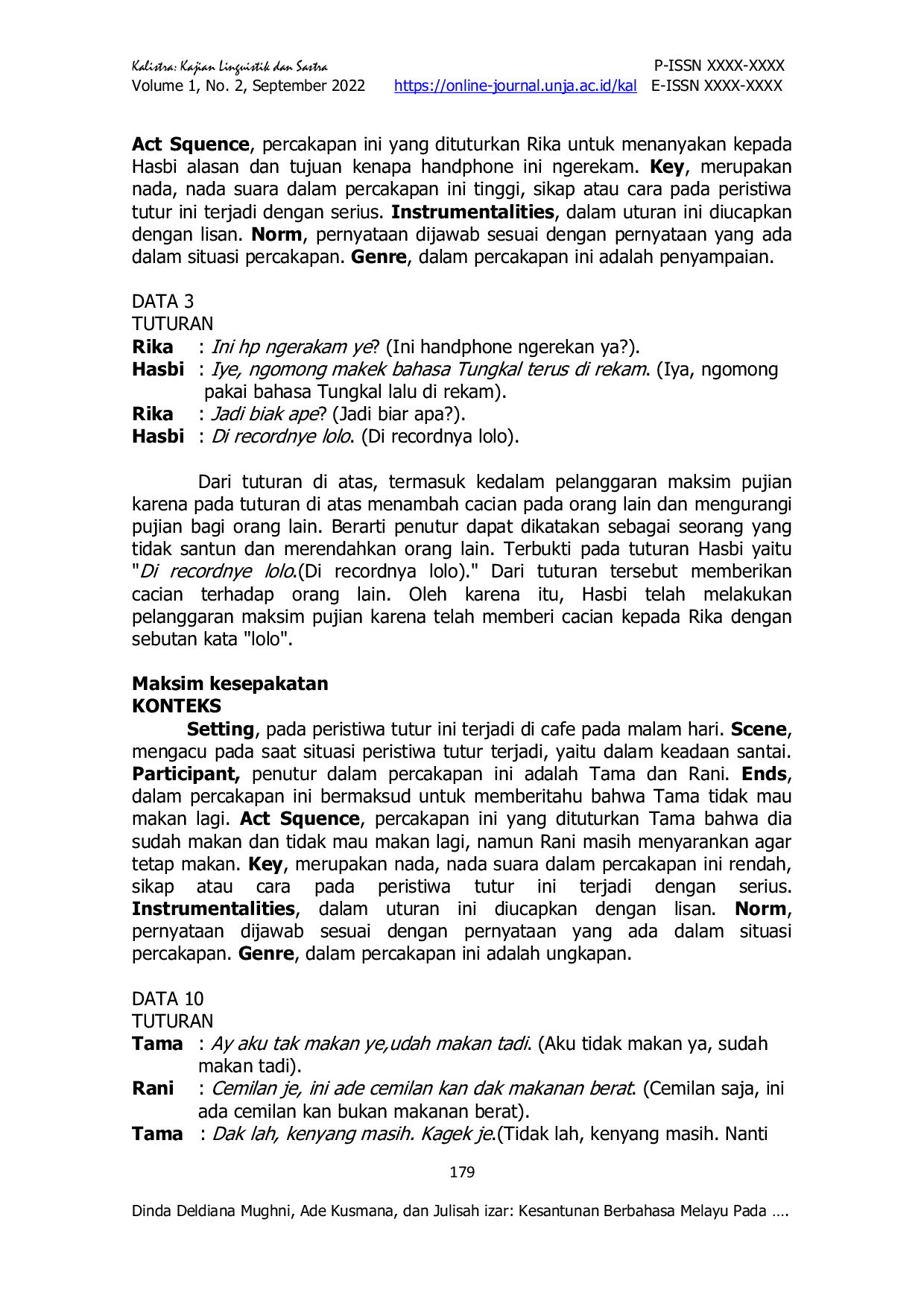 UNJAUNJA Hasil penelitian yaitu terdapat 60 data yang termasuk ke dalam pematuhan dan pelanggaran prinsip kesantunan. Pada pematuhan prinsip kesantunan terdapatHasil penelitian yaitu terdapat 60 data yang termasuk ke dalam pematuhan dan pelanggaran prinsip kesantunan. Pada pematuhan prinsip kesantunan terdapat