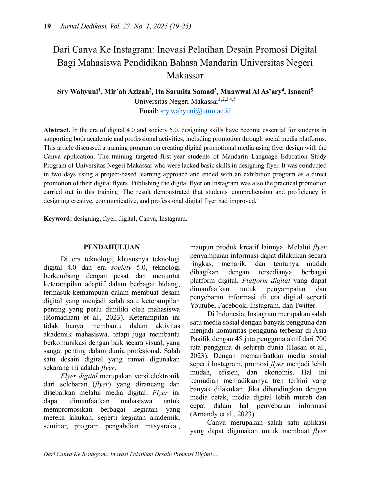 UNMUNM Pelatihan ini ditujukan bagi mahasiswa Pendidikan Bahasa Mandarin Universitas Negeri Makassar yang memiliki keterampilan dasar desain flyer yang terbatas.Pelatihan ini ditujukan bagi mahasiswa Pendidikan Bahasa Mandarin Universitas Negeri Makassar yang memiliki keterampilan dasar desain flyer yang terbatas.
