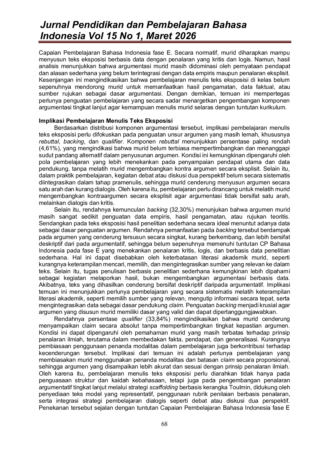 UNDIKSHAUNDIKSHA Temuan ini mengimplikasikan perlunya pembelajaran yang secara sistematis mengembangkan penalaran argumentatif agar selaras dengan tuntutan Capaian PembelajaranTemuan ini mengimplikasikan perlunya pembelajaran yang secara sistematis mengembangkan penalaran argumentatif agar selaras dengan tuntutan Capaian Pembelajaran