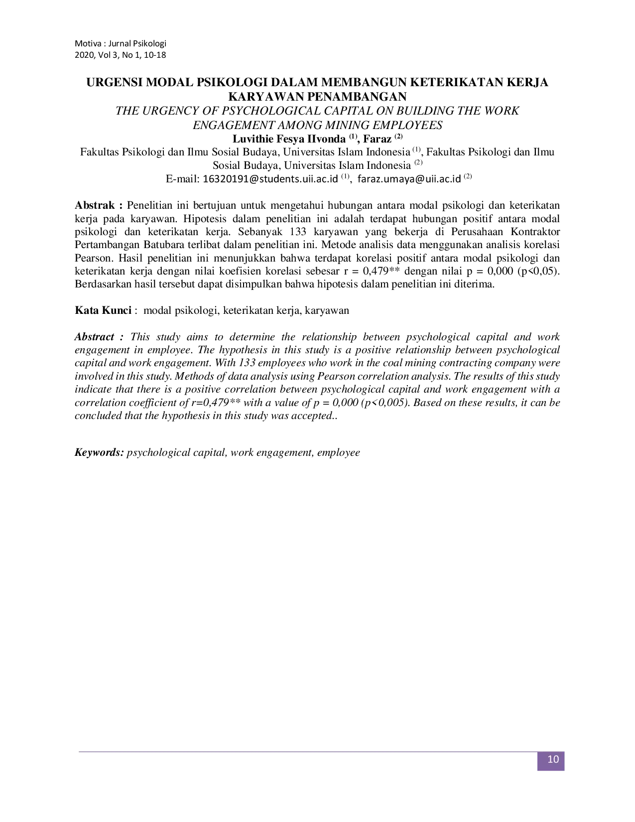 UNTAG SMDUNTAG SMD Penelitian ini bertujuan untuk mengetahui hubungan antara modal psikologi dan keterikatan kerja pada karyawan. Hipotesis dalam penelitian ini adalah terdapatPenelitian ini bertujuan untuk mengetahui hubungan antara modal psikologi dan keterikatan kerja pada karyawan. Hipotesis dalam penelitian ini adalah terdapat