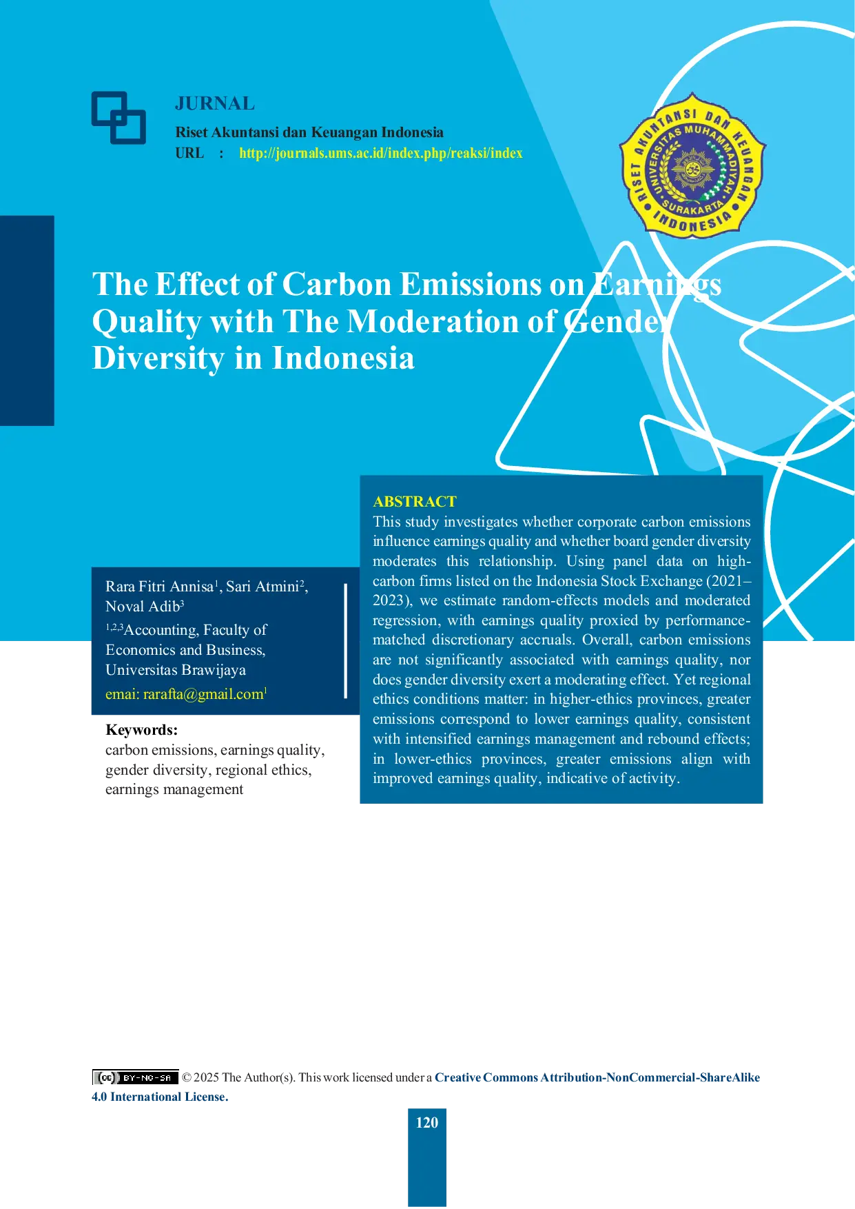UMSUMS Analisis subkelompok menunjukkan bahwa di wilayah beretika tinggi, emisi lebih tinggi terkait dengan kualitas laba yang lebih rendah, sementara di wilayahAnalisis subkelompok menunjukkan bahwa di wilayah beretika tinggi, emisi lebih tinggi terkait dengan kualitas laba yang lebih rendah, sementara di wilayah