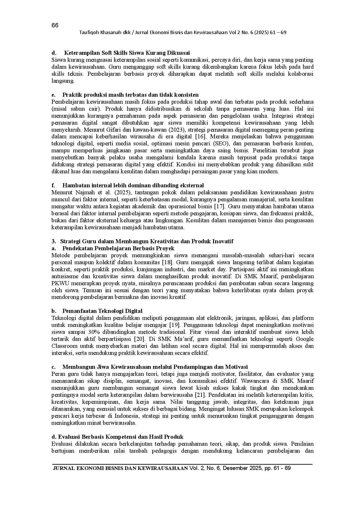 SMARTPUBLISHERSMARTPUBLISHER Kesimpulannya,. Penelitian menunjukkan bahwa guru PKWU di SMK Maarif NU Kajen berperan sebagai fasilitator, mentor, dan evaluator dalam mengembangkan kreativitasKesimpulannya,. Penelitian menunjukkan bahwa guru PKWU di SMK Maarif NU Kajen berperan sebagai fasilitator, mentor, dan evaluator dalam mengembangkan kreativitas