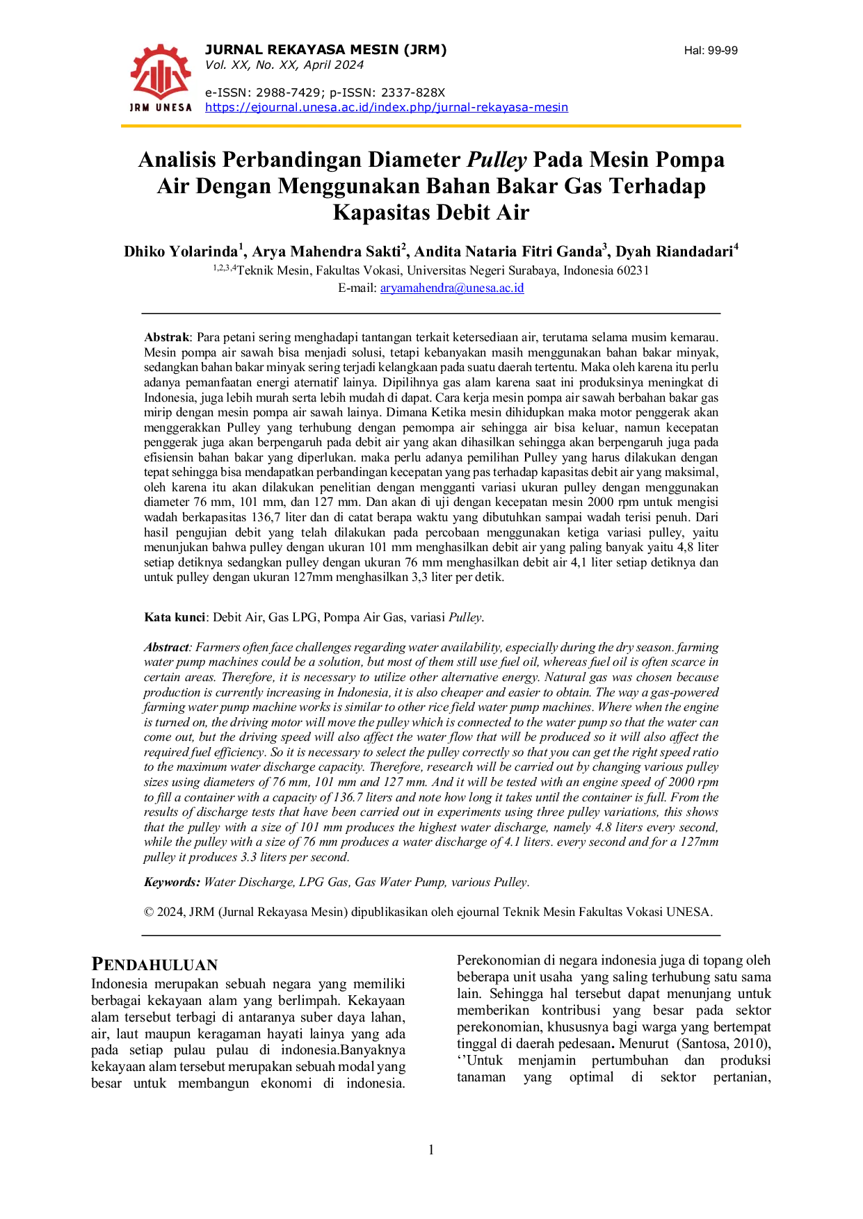 UNESAUNESA Tenaga penggerak pompa dimodifikasi pada bagian sistem bahan bakar (karburator) digantikan dengan leher karburator universal. dengan menggunakan tiga variasiTenaga penggerak pompa dimodifikasi pada bagian sistem bahan bakar (karburator) digantikan dengan leher karburator universal. dengan menggunakan tiga variasi