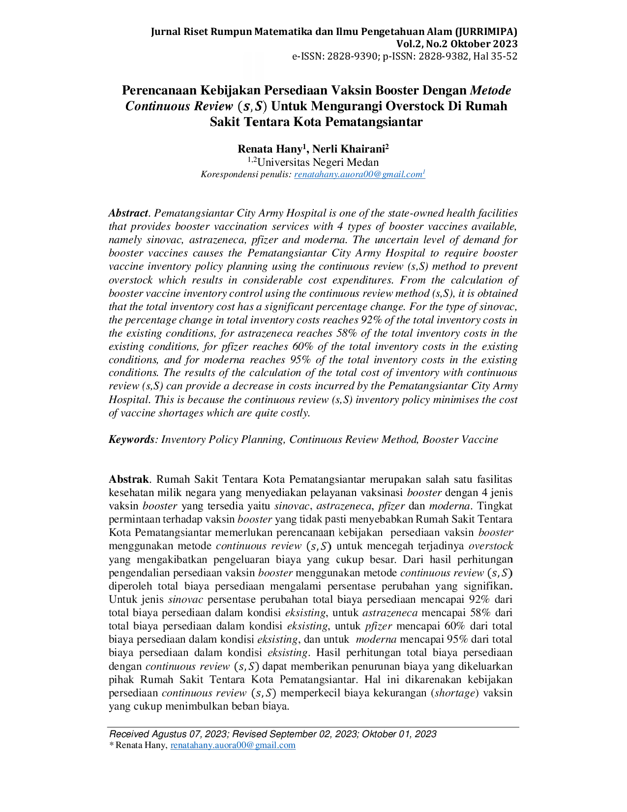 PRINPRIN Untuk jenis sinovac persentase perubahan total biaya persediaan mencapai 92% dari total biaya persediaan dalam kondisi eksisting, untuk astrazeneca mencapaiUntuk jenis sinovac persentase perubahan total biaya persediaan mencapai 92% dari total biaya persediaan dalam kondisi eksisting, untuk astrazeneca mencapai