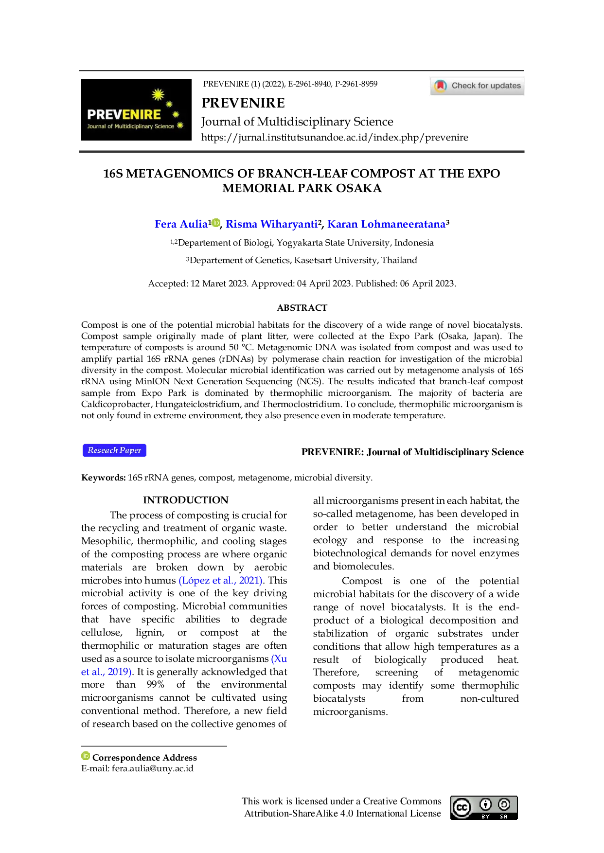 INSTITUTSUNANDOEINSTITUTSUNANDOE Metagenomic DNA was isolated from compost and was used to amplify partial 16S rRNA genes (rDNAs) by polymerase chain reaction for investigation of theMetagenomic DNA was isolated from compost and was used to amplify partial 16S rRNA genes (rDNAs) by polymerase chain reaction for investigation of the