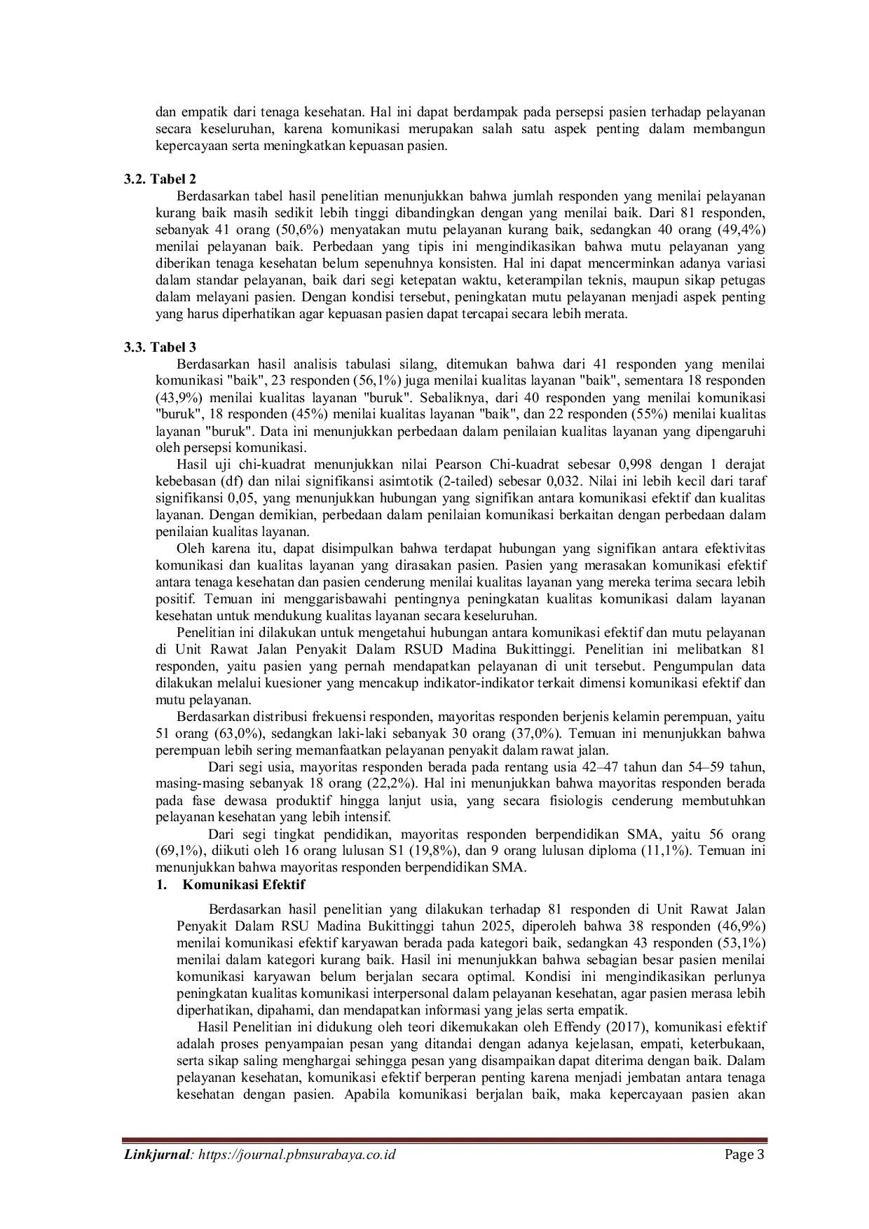 PBNSURABAYAPBNSURABAYA Penelitian ini bertujuan untuk mengetahui hubungan komunikasi efektif karyawan dengan mutu pelayanan di Unit Rawat Jalan Penyakit Dalam RSU Madina BukittinggiPenelitian ini bertujuan untuk mengetahui hubungan komunikasi efektif karyawan dengan mutu pelayanan di Unit Rawat Jalan Penyakit Dalam RSU Madina Bukittinggi