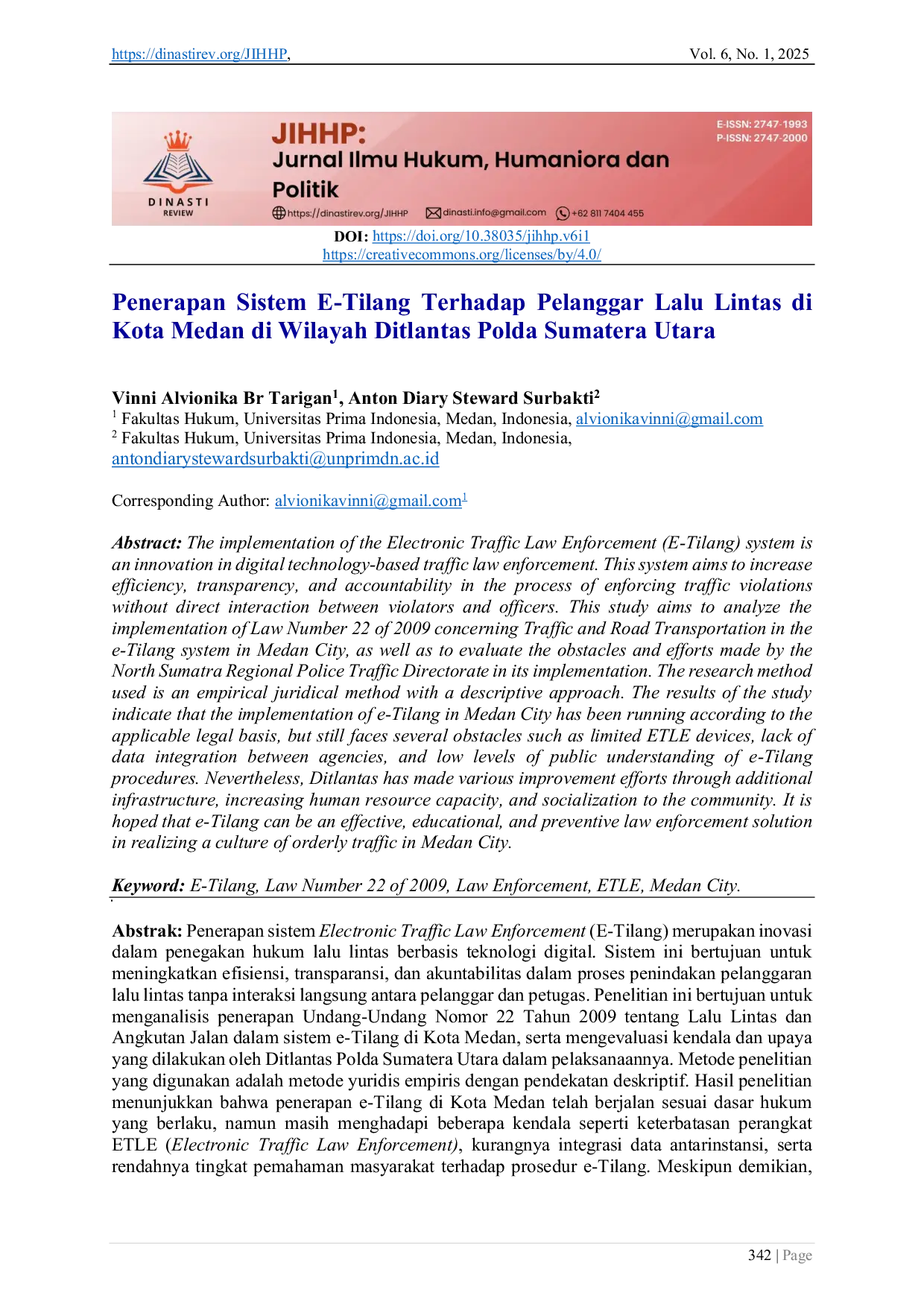 DINASTIREVDINASTIREV Hasil penelitian menunjukkan bahwa penerapan e-Tilang di Kota Medan telah berjalan sesuai dasar hukum yang berlaku, namun masih menghadapi beberapa kendalaHasil penelitian menunjukkan bahwa penerapan e-Tilang di Kota Medan telah berjalan sesuai dasar hukum yang berlaku, namun masih menghadapi beberapa kendala