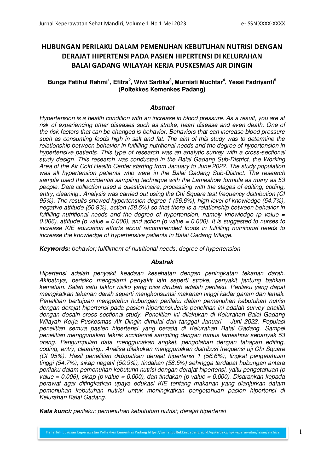 POLTEKKES PADANGPOLTEKKES PADANG 9%), tindakan (58. 5%) sehingga terdapat hubungan antara perilaku dalam pemenuhan kebutuhn nutrisi dengan derajat hipertensi, yaitu pengetahuan (p value9%), tindakan (58. 5%) sehingga terdapat hubungan antara perilaku dalam pemenuhan kebutuhn nutrisi dengan derajat hipertensi, yaitu pengetahuan (p value