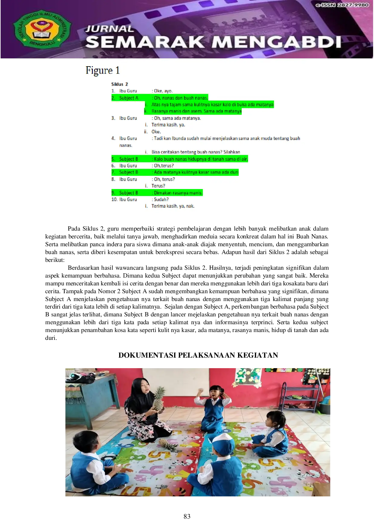 STIABENGKULUSTIABENGKULU Mereka hanya memberikan satu kata sebagai respons. Setelah data dikumpulkan, penulis memberikan perlakuan berupa pembelajaran melalui Story Telling denganMereka hanya memberikan satu kata sebagai respons. Setelah data dikumpulkan, penulis memberikan perlakuan berupa pembelajaran melalui Story Telling dengan