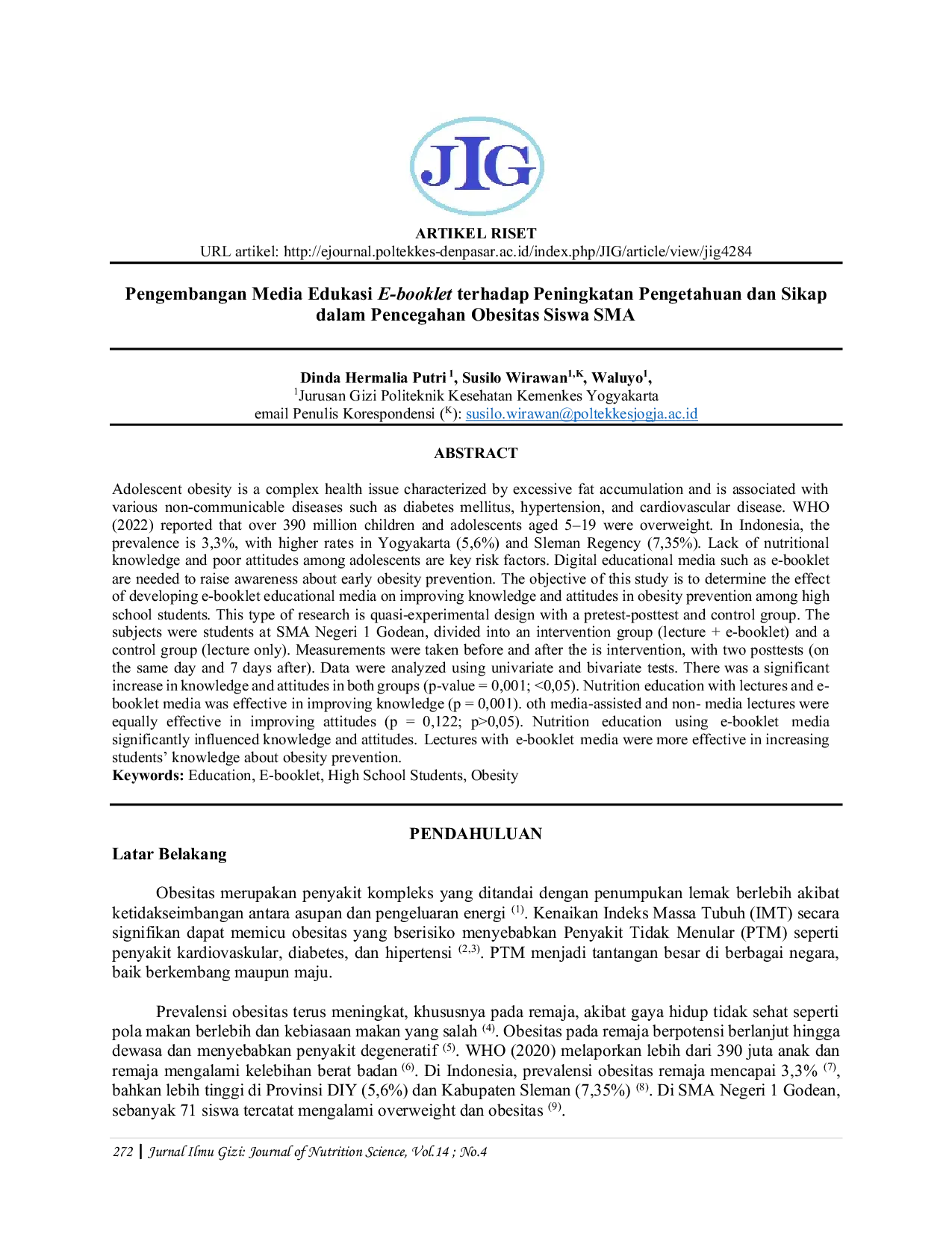 POLTEKKES DENPASARPOLTEKKES DENPASAR Jenis penelitian ini adalah kuasi-eksperimental dengan desain pretest-posttest dan kelompok kontrol. Subjek penelitian adalah siswa SMA Negeri 1 Godean,Jenis penelitian ini adalah kuasi-eksperimental dengan desain pretest-posttest dan kelompok kontrol. Subjek penelitian adalah siswa SMA Negeri 1 Godean,