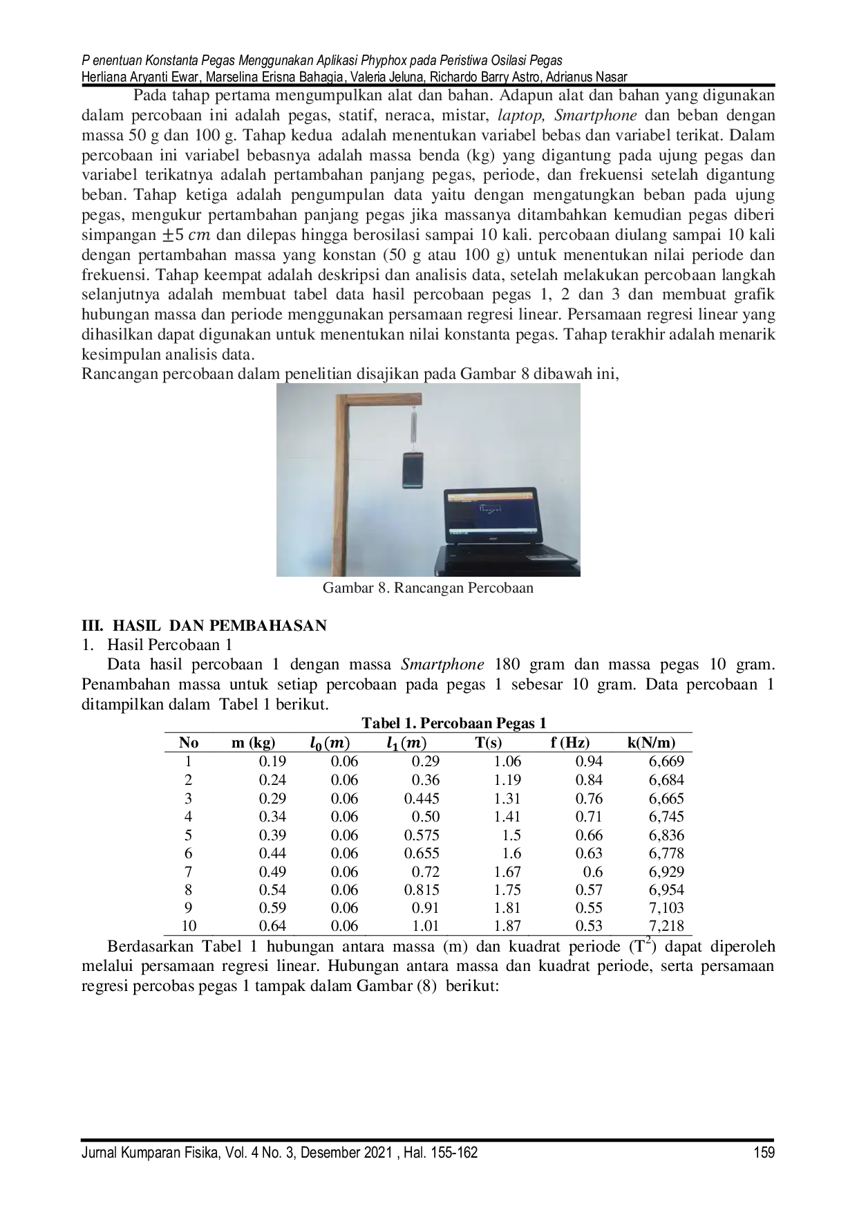UNIBUNIB Hasil penelitian menggunakan menu spring pada aplikasi phyphox menunjukkan. 1) pegas 1 dengan massa 10 g dan panjang 6 cm memiliki konstanta sebesar 7,424Hasil penelitian menggunakan menu spring pada aplikasi phyphox menunjukkan. 1) pegas 1 dengan massa 10 g dan panjang 6 cm memiliki konstanta sebesar 7,424